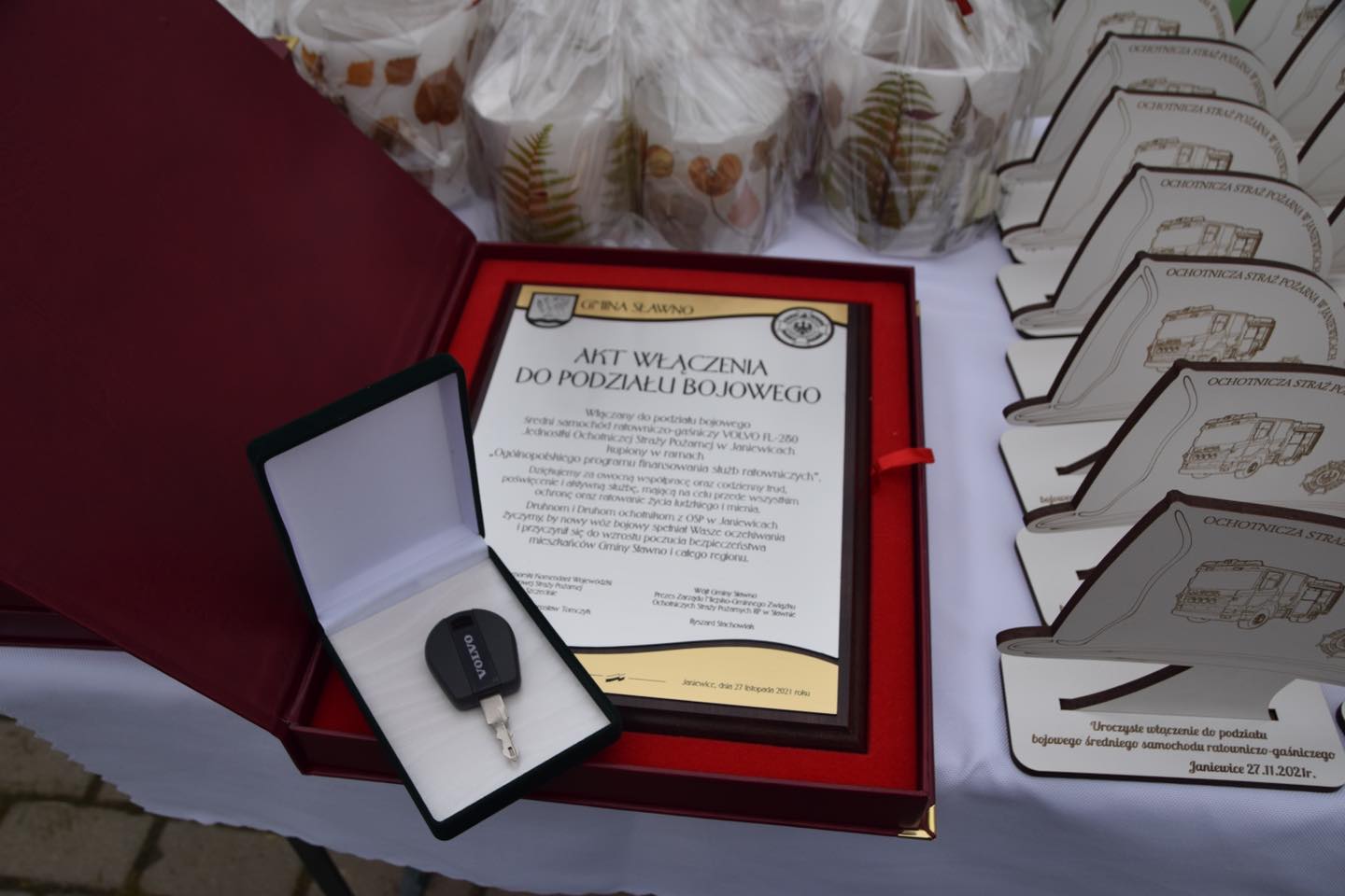 Następnie odbyło się uroczyste włączenie pojazdu do podziału bojowego poprzez wręczenie kluczyków do nowego wozu oraz symbolicznego Aktu Włączenia. Z rąk Pawła Szefernakera – Sekretarza Stanu MSWiA, Jarosława Tomczyka – Zachodniopomorskiego Komendanta Wojewódzkiego PSP i Wójta gminy Sławno kluczyki i akt włączenia odebrali przedstawiciele OSP w Janiewicach: Artur Krzemieniec – prezes i Dariusz Tulula – Naczelnik. Tradycyjnym włączeniem sygnałów dźwiękowych i świetlnych w nowym samochodzie potwierdzono gotowość wozu do niesienia pomocy.
