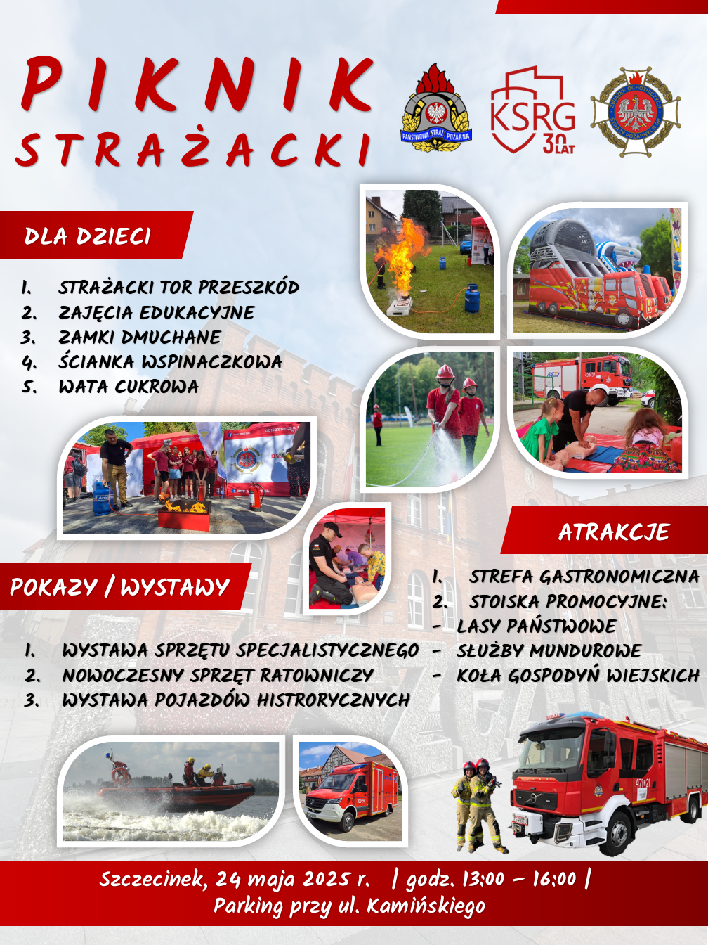 W sobotę, 24 maja 2025 roku, w godzinach od 13:00 do 16:00, na parkingu przy ul. Kamińskiego w Szczecinku odbędzie się Piknik Strażacki.