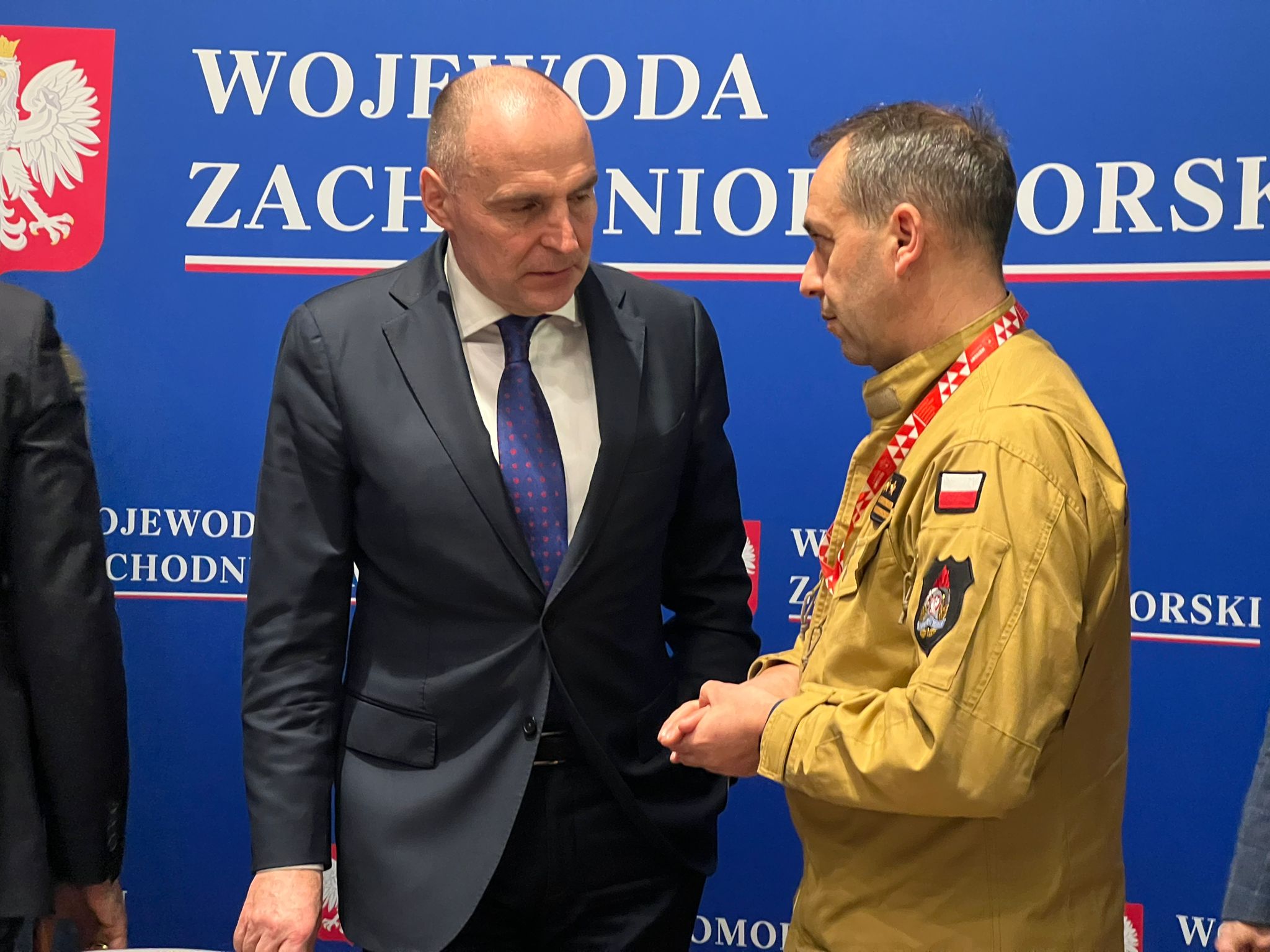Zachodniopomorski Komendant Wojewódzki Państwowej Straży Pożarnej st. bryg. Mirosław Pender, w dniu 13 stycznia 2025 roku, wziął udział w zwołanym przez Wojewodę Zachodniopomorskiego Adama Rudawskiego posiedzeniu Zespołu Zarządzania Kryzysowego z udziałem samorządowców oraz inspekcji i służb, które odpowiadają za bezpieczeństwo.
