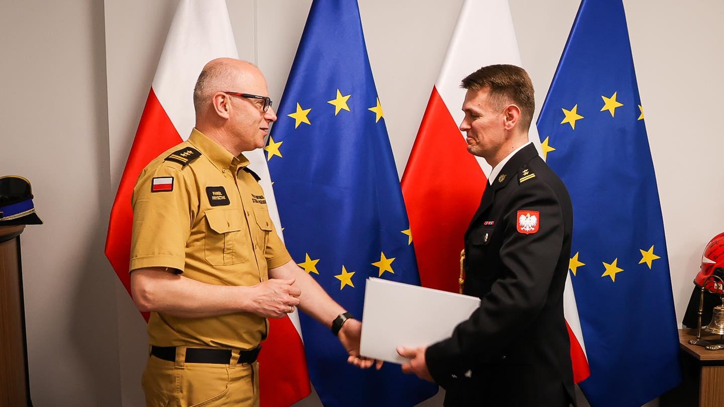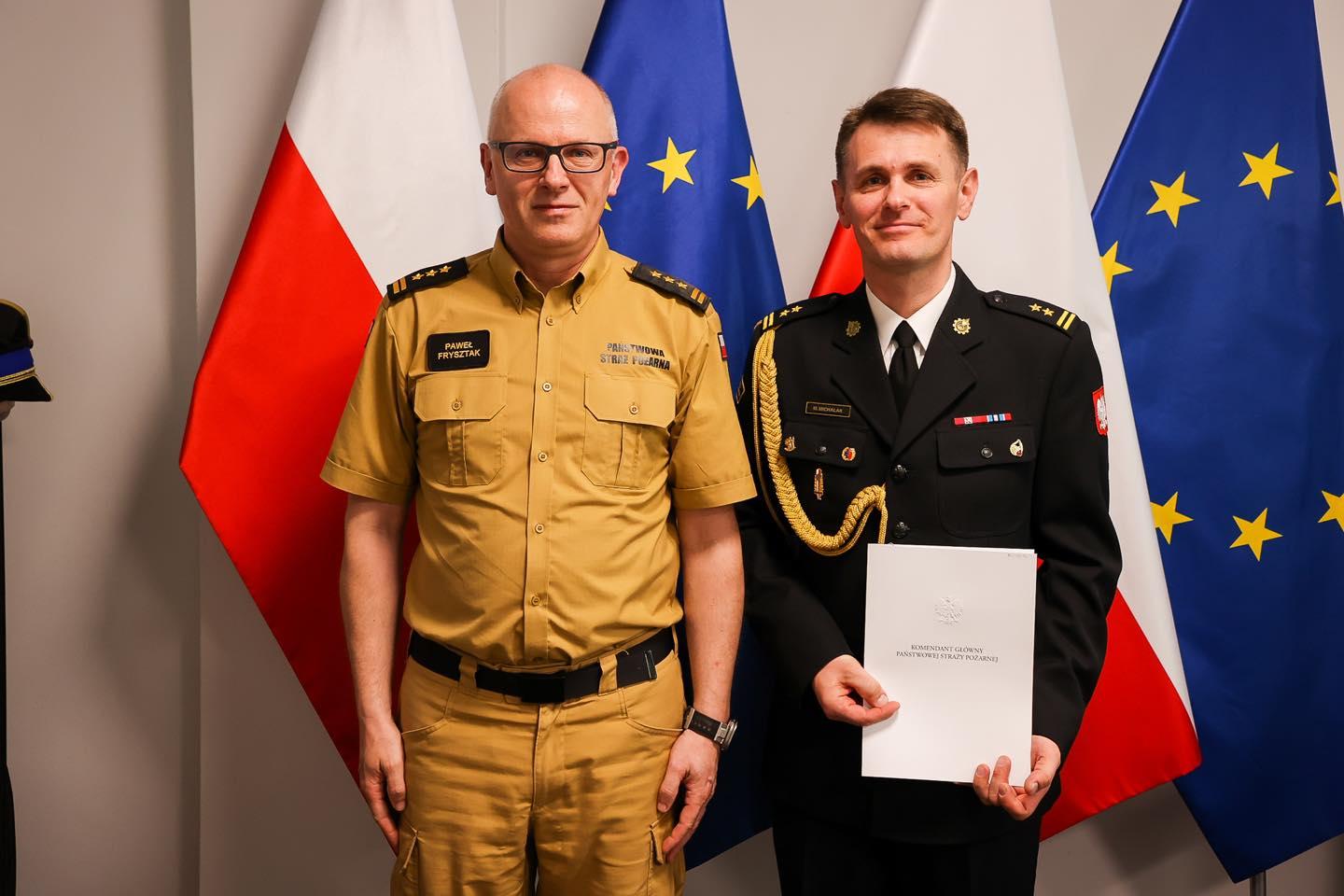 Decyzję personalną Państwowej Straży Pożarnej wręczył w siedzibie Komendy Głównej PSP zastępca komendanta głównego PSP st. bryg. Paweł Frysztak.