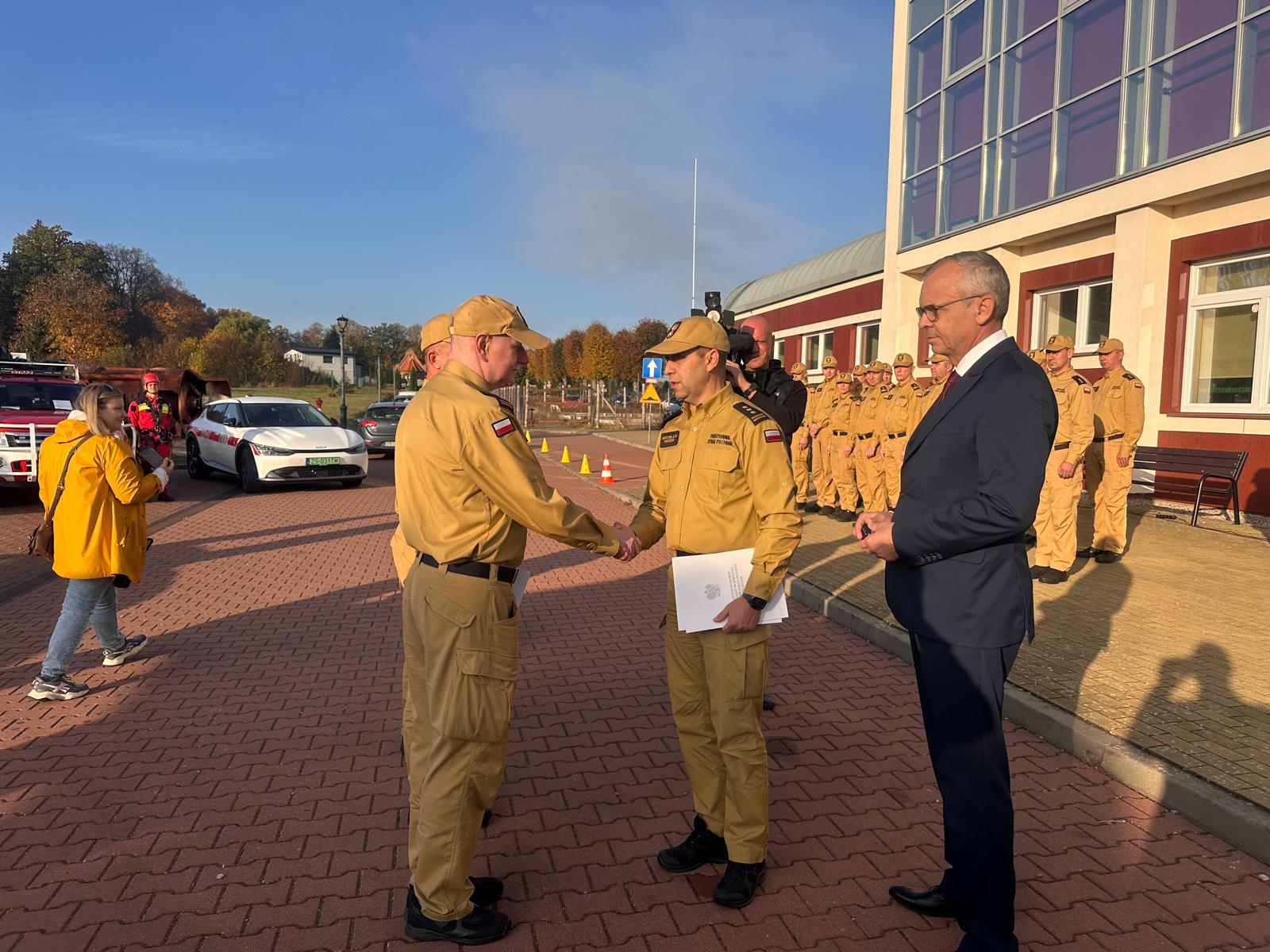 W dniu 24 października 2024 r. odbyła się uroczysta zbiórka z okazji przekazania samochodów operacyjnych oraz sprzętu do ratownictwa i likwidacji zagrożeń środowiska naturalnego dla jednostek organizacyjnych Państwowej Straży Pożarnej woj. zachodniopomorskiego. Przekazania sprzętu i pojazdów dokonał Prezes Zarządu Wojewódzkiego Funduszu Ochrony Środowiska i Gospodarki Wodnej w Szczecinie pan Waldemar Miśko oraz Zachodniopomorski Komendant Wojewódzki Państwowej Straży Pożarnej st. bryg. Mirosław Pender.