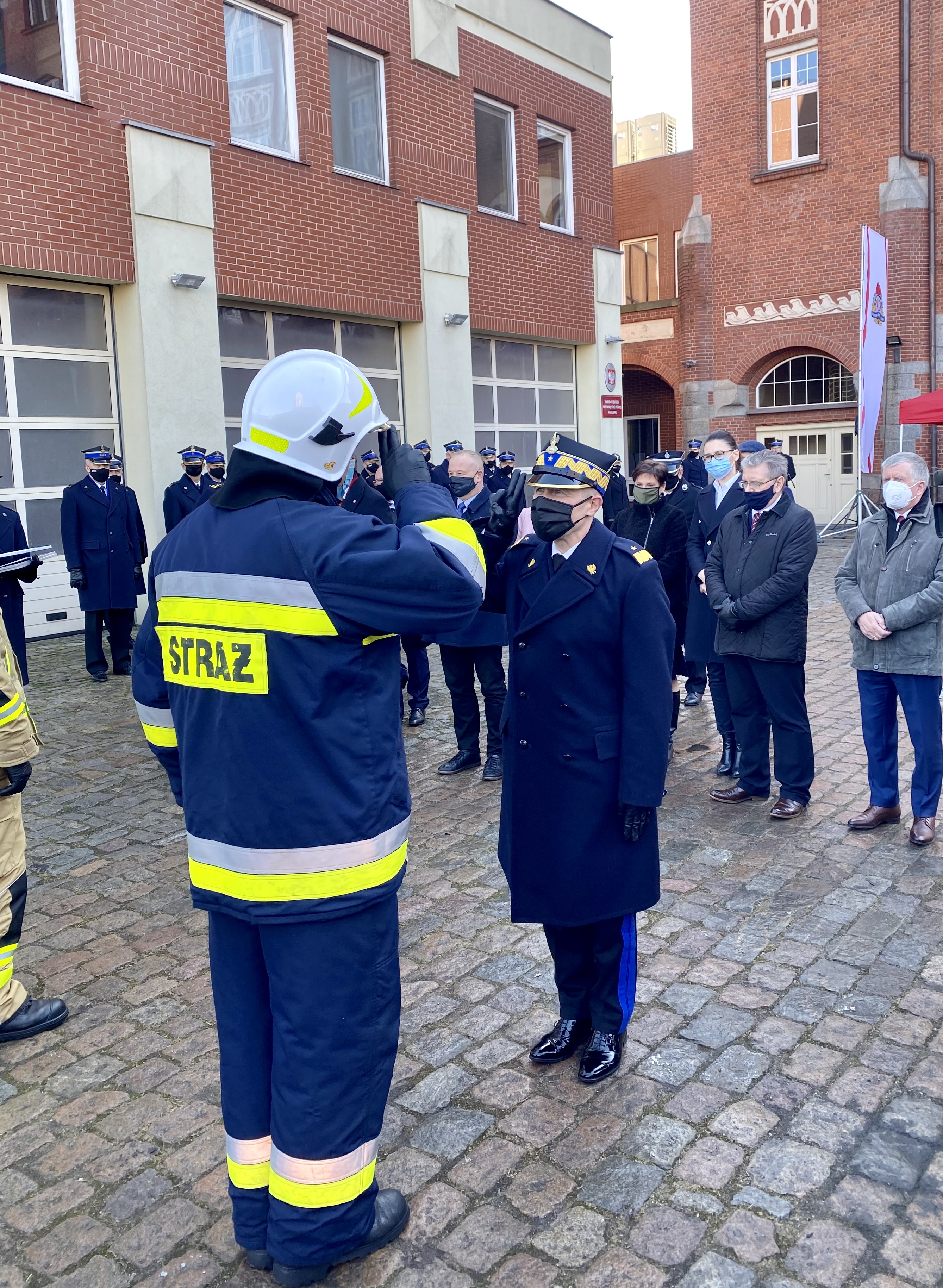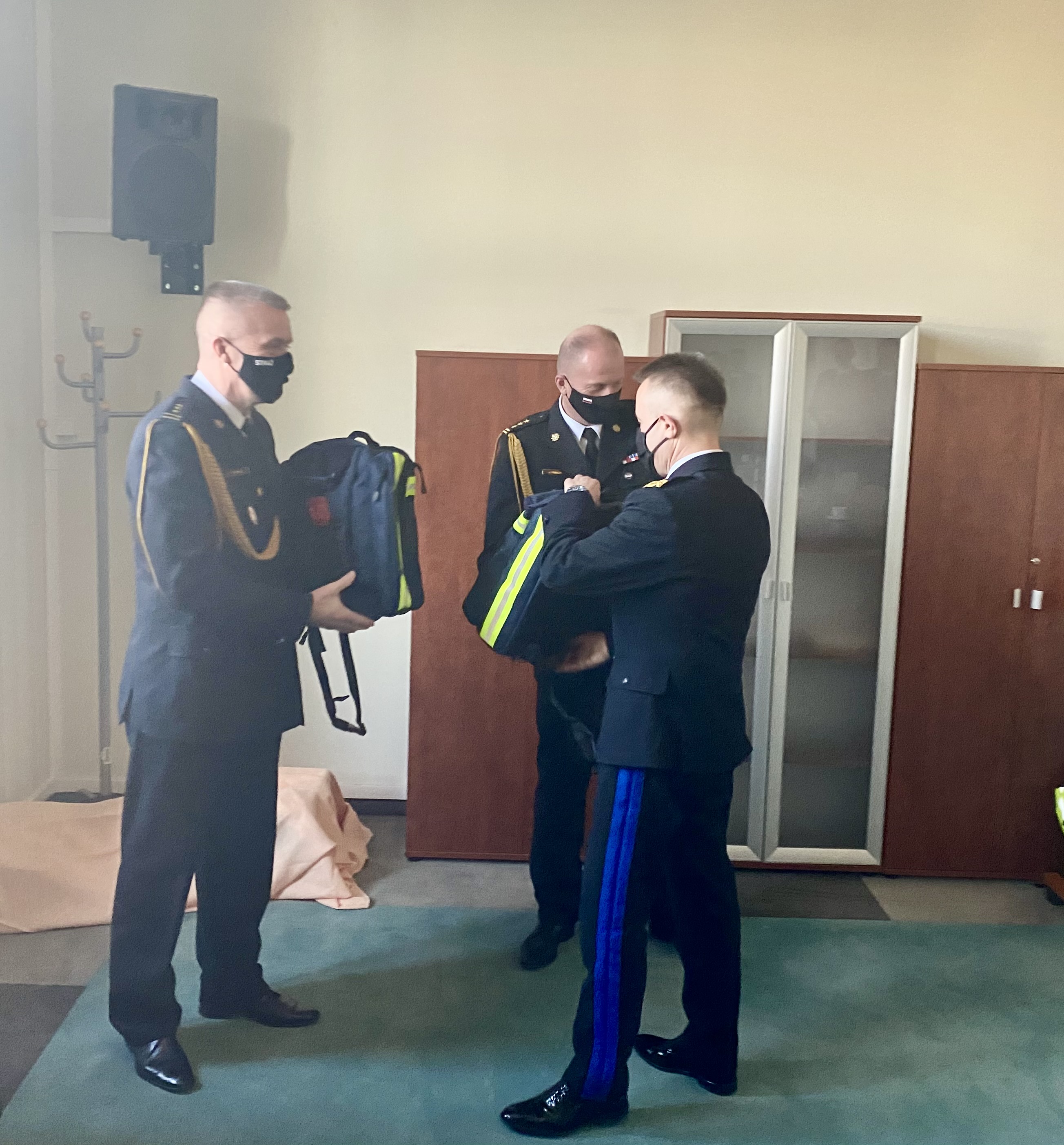 Na zakończenie uroczystości nadbrygadier Andrzej Bartkowiak Komendant Główny Państwowej Straży Pożarnej przekazał Komendantom Powiatowym/Miejskim województwa Zachodniopomorskiego plecaki diagnostyczne ratownictwa medycznego z wyposażeniem, które ułatwią funkcjonariuszom z wykształceniem zawodowym ratownika medycznego wykonywanie swoich codziennych obowiązków podczas działań ratowniczo gaśniczych.