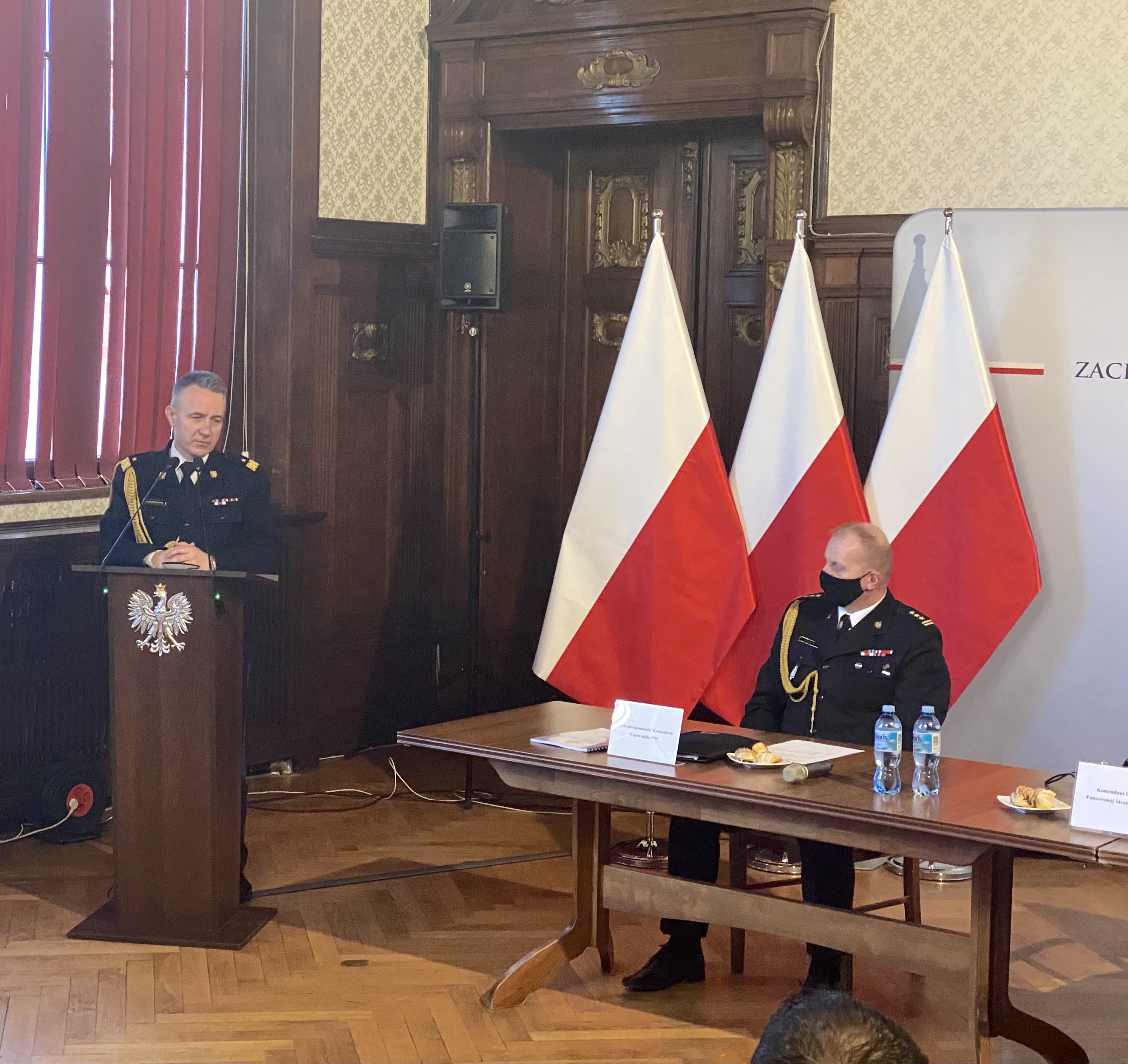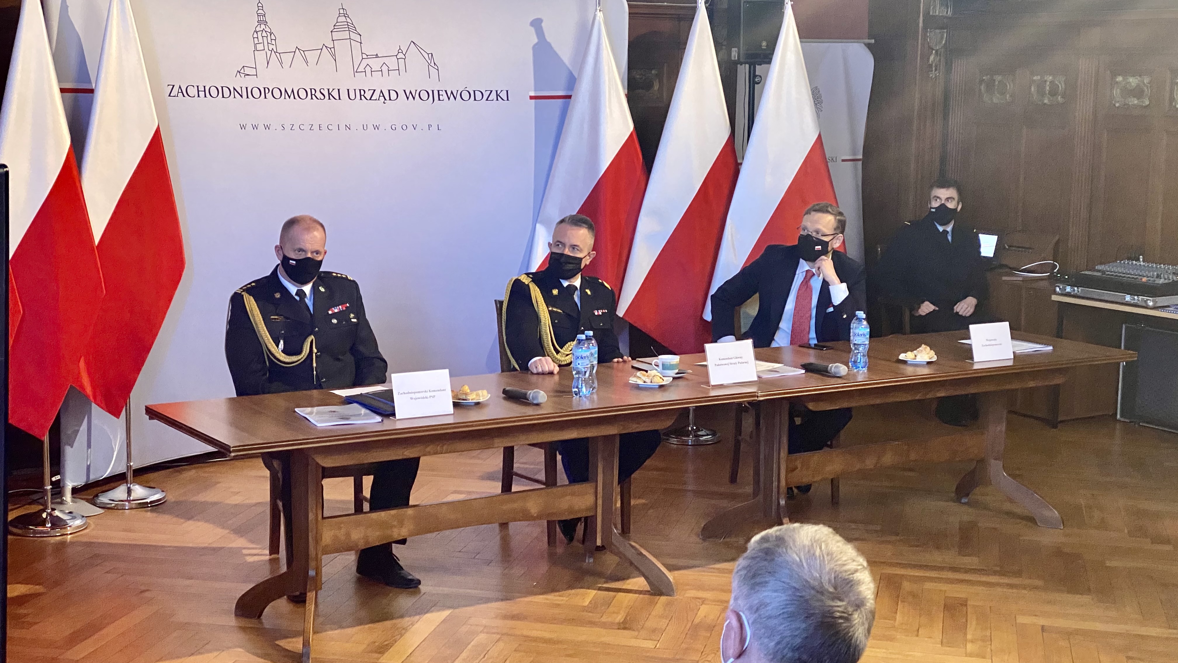 Po uroczystej zbiórce, w Zachodniopomorskim Urzędzie Wojewódzkim odbyła się narada podsumowująca działalność Państwowej Straży Pożarnej województwa Zachodniopomorskiego w 2020 roku.