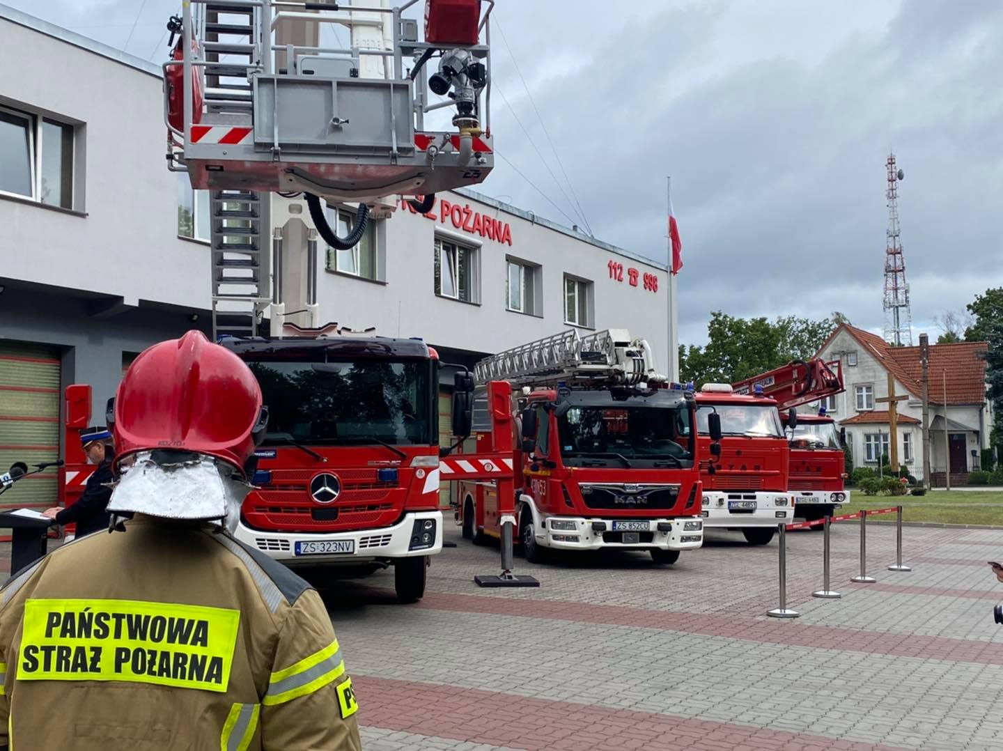 19 sierpnia 2021 roku przed budynkiem Komendy Powiatowej Państwowej Straży Pożarnej w Goleniowie podczas uroczystej zbiórki miało miejsce przekazanie nowych samochodów do działań ratowniczo-gaśniczych.