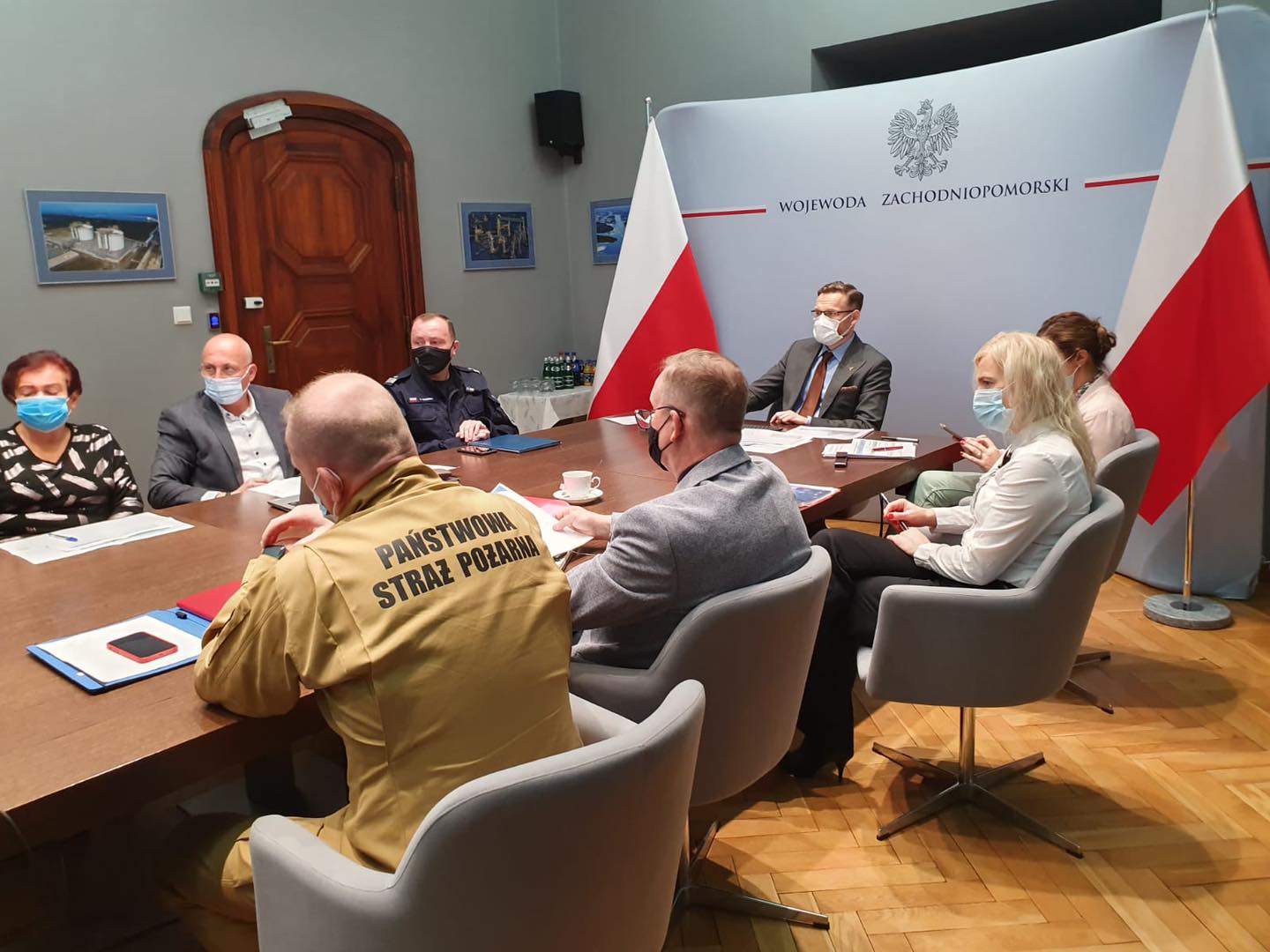 W spotkaniu uczestniczył Zachodniopomorski Komendant Wojewódzki Państwowej Straży Pożarnej st. bryg. Jarosław Tomczyk. Spotkanie dotyczyło organizacji opieki szpitalnej w związku z rosnącą liczbą hospitalizowanych pacjentów z COVID-19