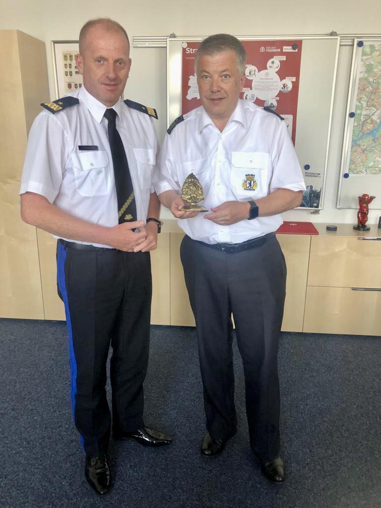 11 lipca br. nadbryg. Jarosław Tomczyk Zachodniopomorski Komendant Wojewódzki Państwowej Straży Pożarnej spotkał się z dr Karstenem Homrighausenem – Komendantem Berlińskiej Straży Pożarnej w głównej siedzibie Berliner Feuerwehr w Berlinie. Spotkanie komendantów poświęcone było omówieniu kierunków współpracy pomiędzy Państwową Strażą Pożarną województwa zachodniopomorskiego, a Berlińską Strażą Pożarną. Podczas spotkania ustalono harmonogram wspólnych szkoleń w zakresie ratownictwa technicznego, ratownictwa wodnego oraz grup wysokościowych. Wszystkie zaplanowane przedsięwzięcia odbędą się w bieżącym roku, zarówno po stronie polskiej jak i niemieckiej. Szef Berlińskiej Straży Pożarnej jeszcze w sierpniu odwiedzi zachodniopomorskich strażaków.