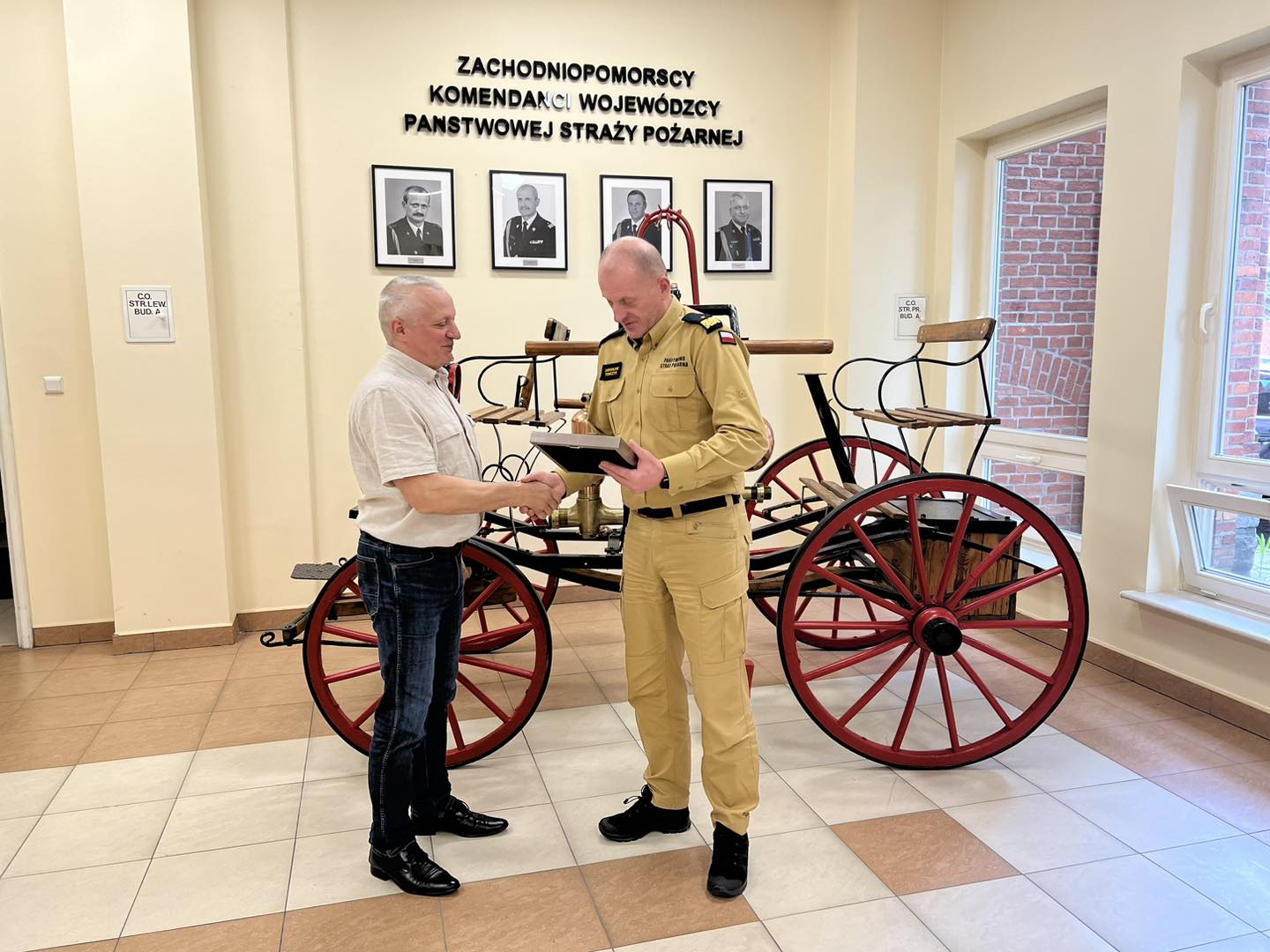W dniu 24 kwietnia 2023 r., w Komendzie Wojewódzkiej Państwowej Straży Pożarnejw Szczecinie, odbyło się spotkanie odchodzącego z stanowiska Przewodniczącego Zachodniopomorskiej Międzyregionalnej Sekcji Pożarnictwa NSZZ „Solidarność” Krzysztofa Karyczaka z Zachodniopomorskim Komendantem Wojewódzkim PSP nadbrygadierem Jarosławem Tomczykiem, w spotkaniu uczestniczył również Sylwester Jerenkiewicz Przewodniczący Zachodniopomorskiego Zarządu Wojewódzkiego Związku Zawodowego