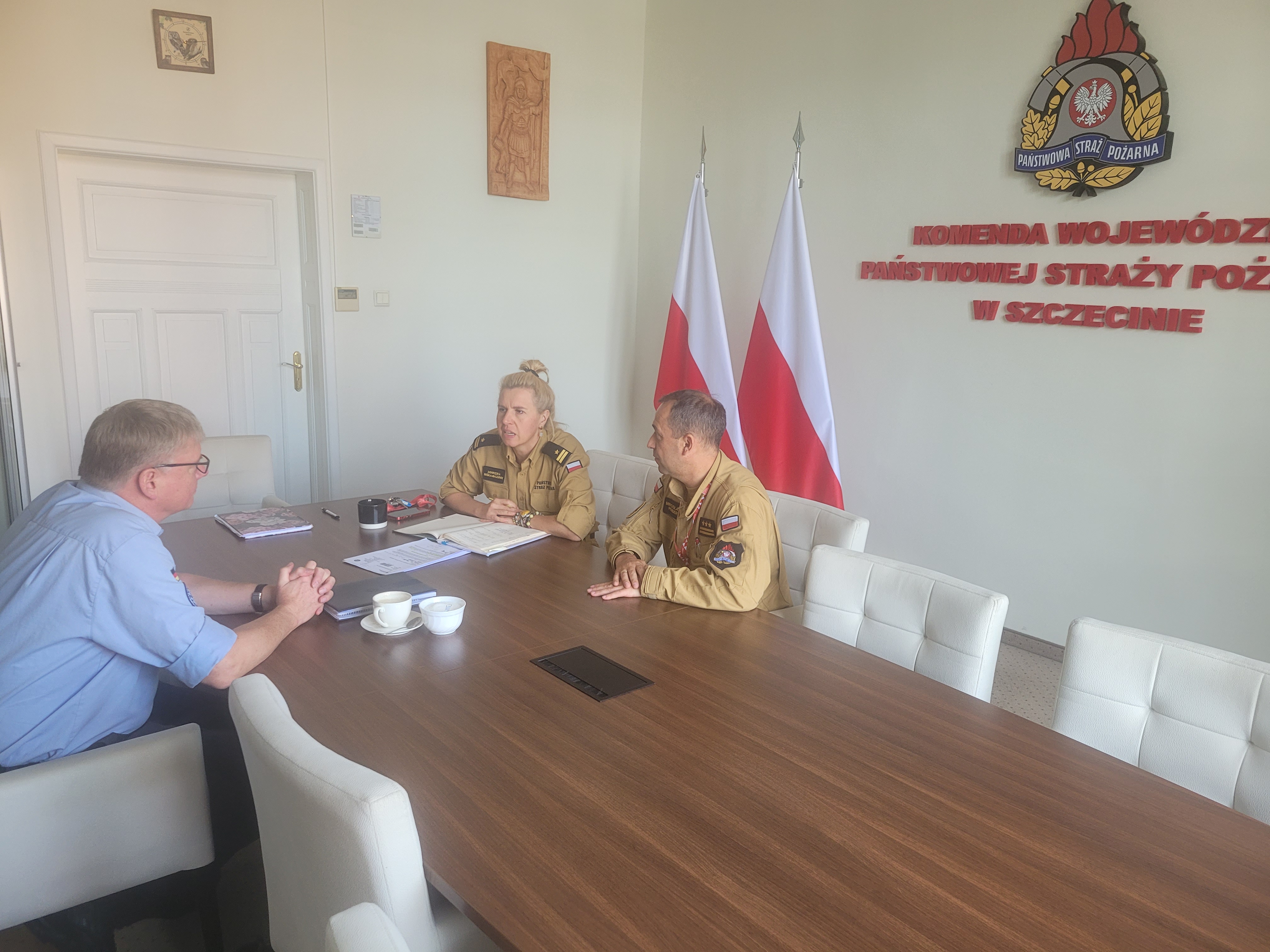 24 września zachodniopomorski komendant wojewódzki Państwowej Straży Pożarnej st. bryg. Mirosław Pender spotkał się z z-cą pełnomocnika federalnej służby THW na kraje związkowe Hamburg, Szlezwik Holsztyn, Meklemburgię - Pomorze Przednie, Jörgiem Behlingiem.