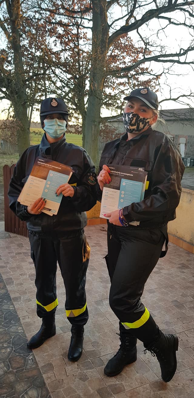 Do komend miejskich i powiatowych zostało dostarczonych 10 mln ulotek propagujących wiedzę na temat profilaktyki oraz szczepień przeciw COVID-19. Rozpoczął się także proces ich kolportowania do mieszkańców małych miejscowości i wsi. Ulotki zostaną rozwiezione przez druhów ochotniczych straży pożarnych. Wcześniej strażacy spersonalizowali ulotki wpisując do każdej z nich numery telefonów do gminnych koordynatorów szczepień.