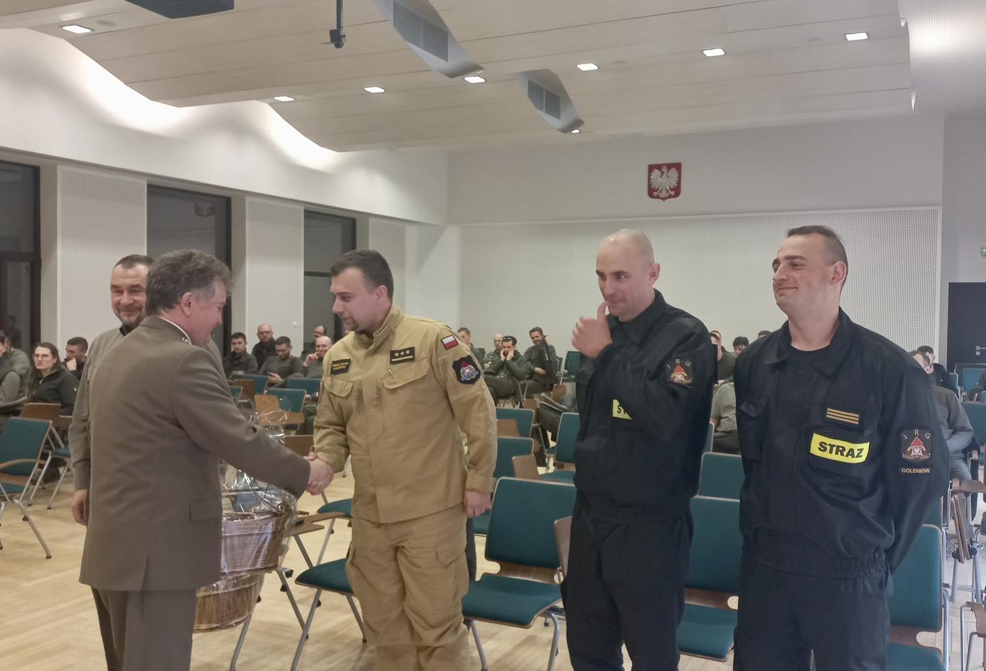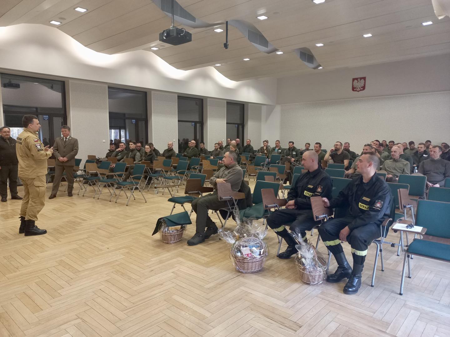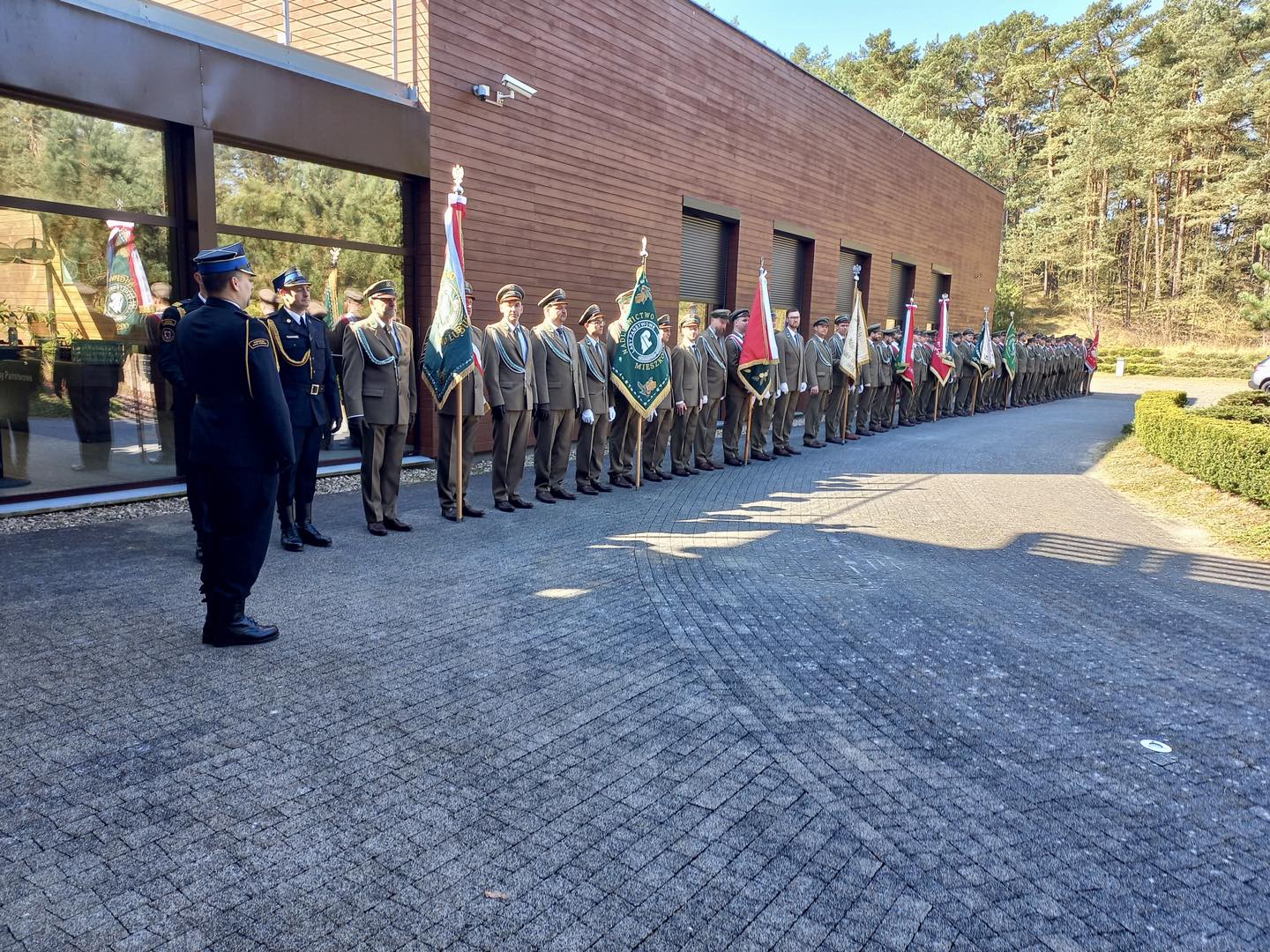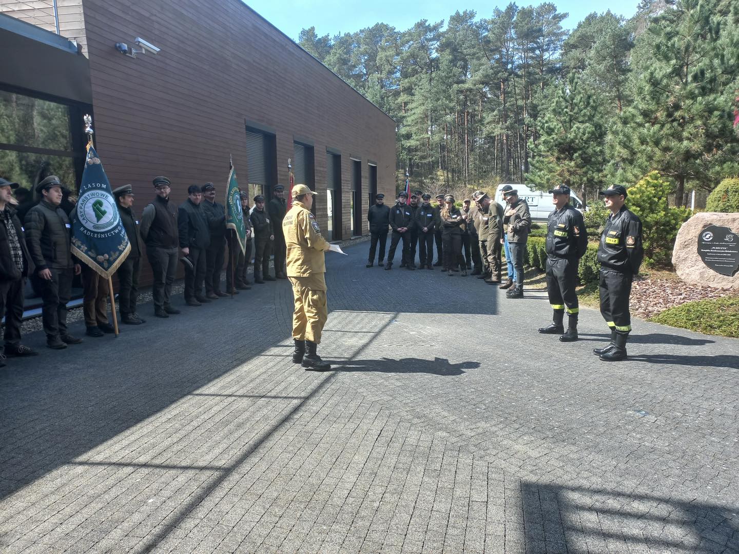 W dniach 18-19 kwietnia br. na terenie Ośrodka Szkoleniowo-Wypoczynkowego „Bażyna” w Pogorzelicy wytypowani funkcjonariusze Państwowej Straży Pożarnej z terenu województwa zachodniopomorskiego, w ramach współpracy z Regionalnej Dyrekcji Lasów Państwowych w Szczecinie, przeprowadzili szkolenie dla członków asysty honorowej Dyrektora RDLP w Szczecinie. Pierwszą część szkolenia poprowadził przedstawiciel Dyrekcji Generalnej Lasów Państwowych p. Tadeusz Pasternak, który przedstawił założenia nowego Ceremoniału Lasów Państwowych. W kolejnych etapach strażacy reprezentujący Zachodniopomorską Kompanię Honorową PSP i poczet sztandarowy Komendy Wojewódzkiej PSP w Szczecinie przekazali swoje umiejętności oraz doświadczenia, które obejmowały zagadnienia z musztry indywidualnej, zbiorowej, posługiwania się sztandarem oraz czynności wykonywanych przez poczty sztandarowe w trakcie uroczystości. Funkcjonariusze podzieli się także wiedzą właściwego dbania o umundurowanie oraz składania i posługiwania się flagą państwową w ramach wystąpień pocztu flagowego. Dziękujemy za możliwość współpracy oraz wymiany doświadczeń.