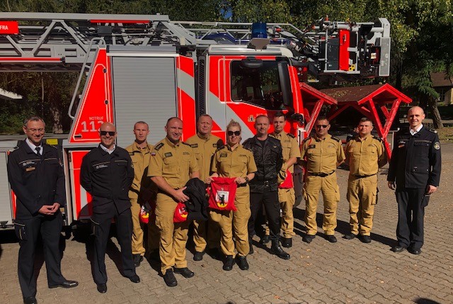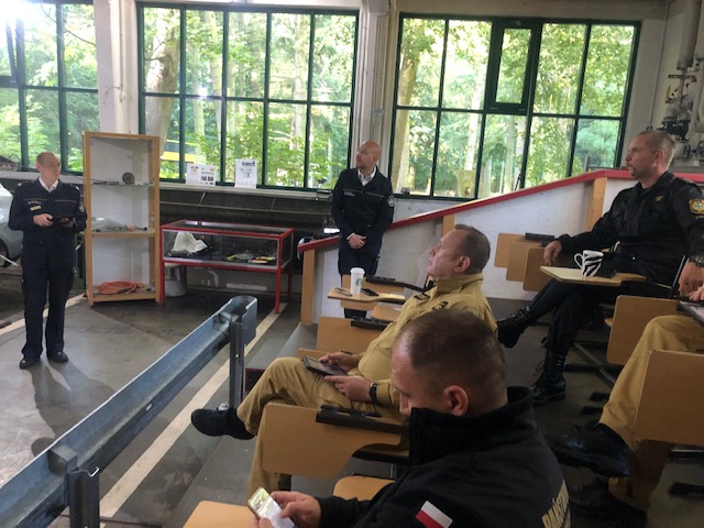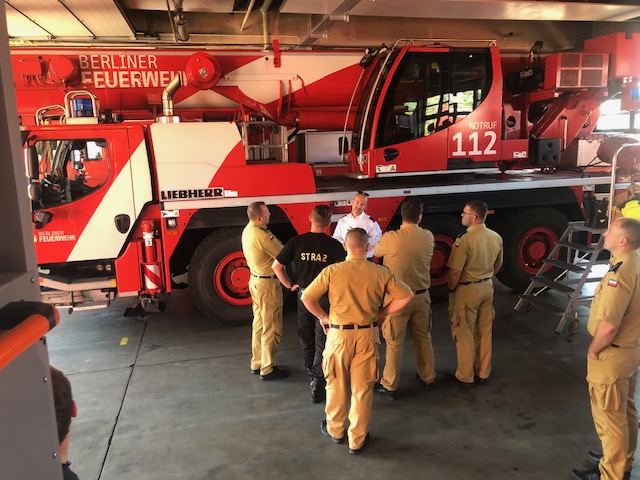 15 września br. na zaproszenie Berlińskiej Straży Pożarnej w szkole pożarniczej w Berlinie delegacja strażaków Państwowej Straży Pożarnej uczestniczyła w szkoleniu z zakresu ratownictwa technicznego. Strażacy poznali ich system szkolenia, a konkretnie jak prowadzić bezpieczne działania gaśnicze z udziałem samochodów z napędem alternatywnym. Ponadto strażacy mogli wymienić się doświadczeniami nabytymi podczas takich zdarzeń oraz zobaczyć rozwiązania stosowane w kolegów z Berlińskiej Straży Pożarnej. Okazało się, że najważniejszym elementem bezpiecznego działania jest pozyskanie przez dowódcę będącego na miejscu zdarzenia Karty Ratowniczej danego pojazdu. Jednocześnie można było zobaczyć potencjał sprzętowy jednostek ratowniczych na terenie Berlina.