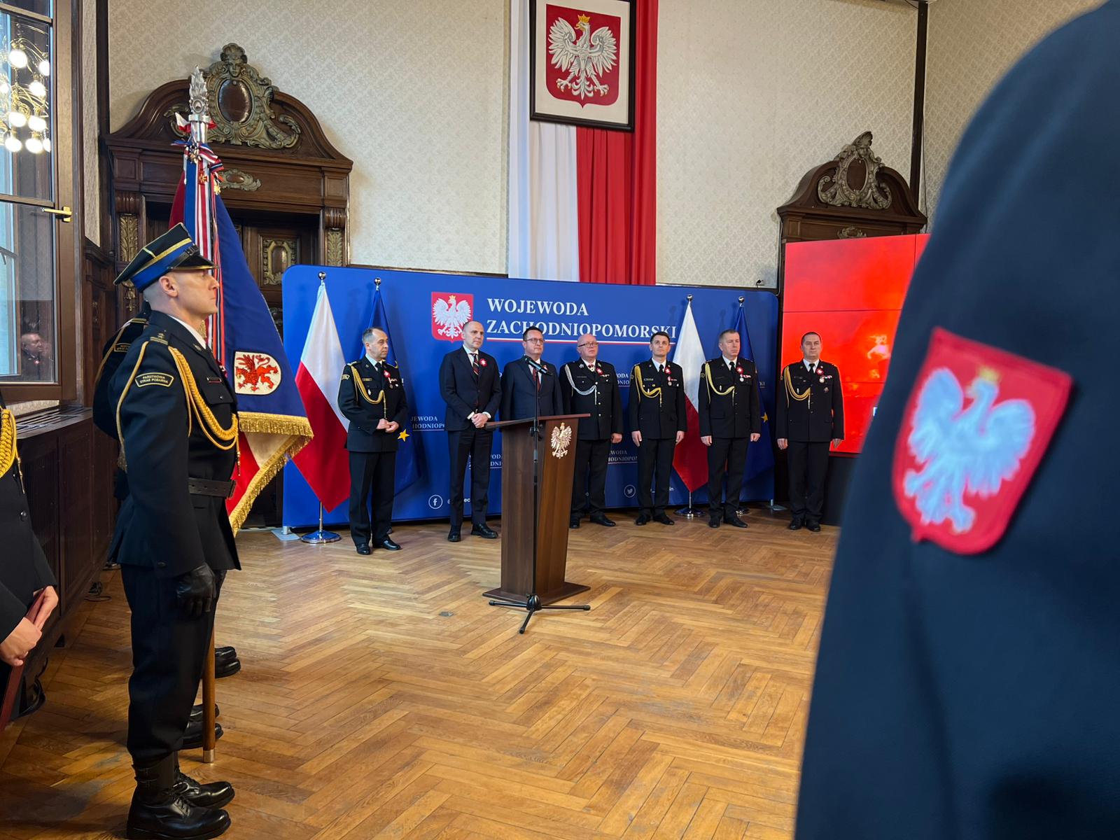 Z okazji Narodowego Święta Niepodległości, w piątek 15 listopada 2024 roku w Sali Rycerskiej Zachodniopomorskiego Urzędu Wojewódzkiego w Szczecinie odbyła się uroczystość wręczania odznaczeń i wyróżnień oraz awansów na wyższe stopnie służbowe.