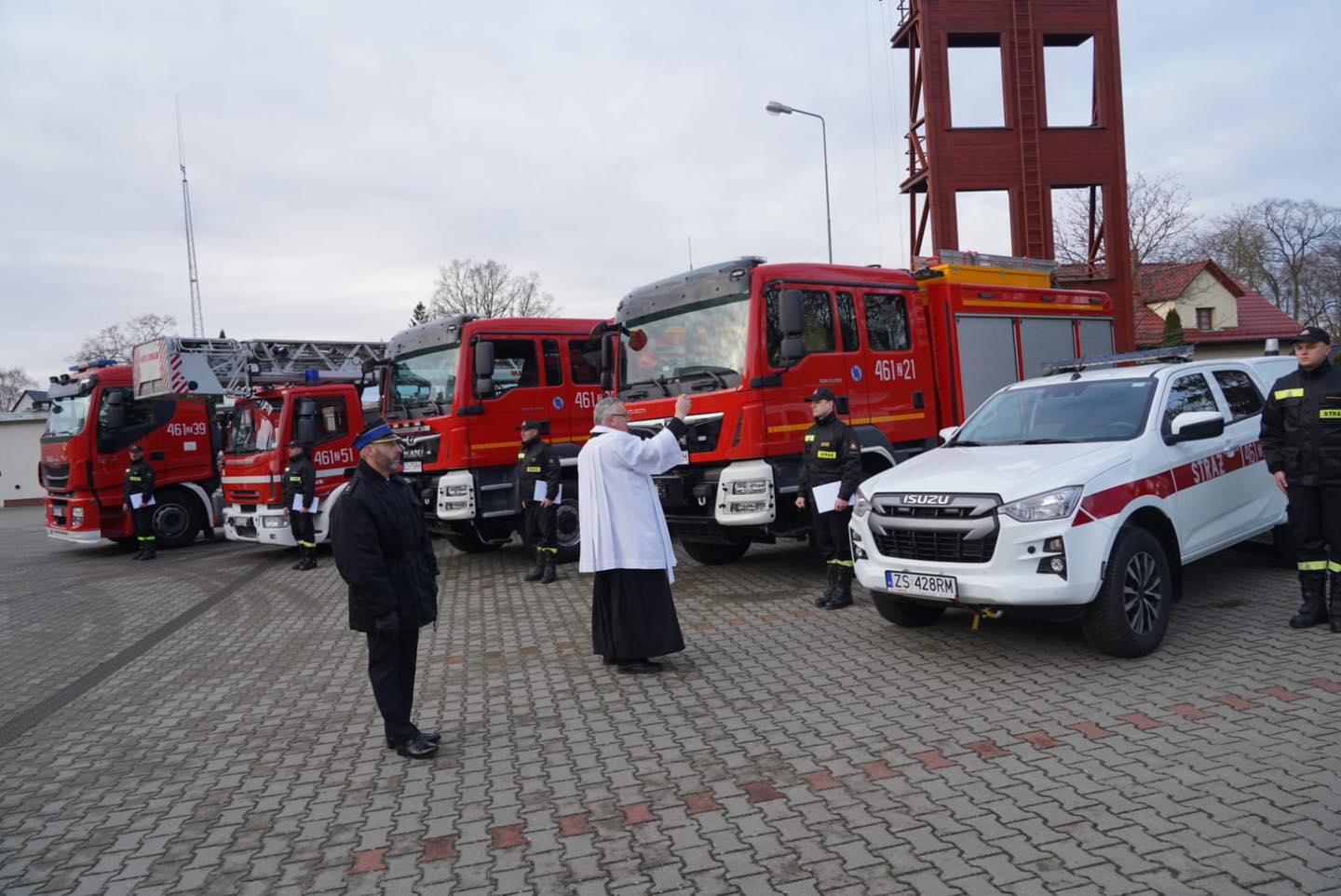 Po wręczeniu aktów nadania i kluczyków od samochodów na ręce strażaków, poświęcenia pojazdów dokonał ksiądz dziekan Dariusz Żarkowski Kapelan Powiatowy Ochotniczych Straży Pożarnych.