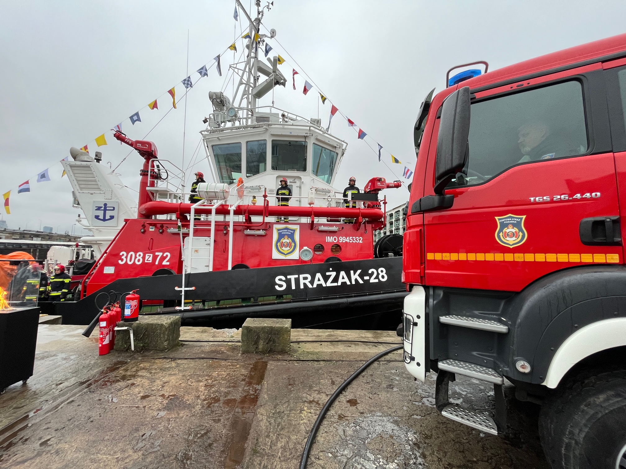 #Strażak28 to bardzo nowoczesna jednostka. Zbudowano ją dla Zarządu Morskich Portów Szczecin i Świnoujście S.A. w gdańskiej stoczni Remontowa Shipbuilding S.A. Dostosowana jest do warunków meteorologicznych i hydrograficznych panujących na wodach południowego Bałtyku. Zapewni asystę statkom przewożącym ładunki niebezpieczne zapewniając ochronę przeciwpożarową. Będzie czuwać nad bezpieczeństwem przeciwpożarowym na akwenach portów morskich Szczecin i Świnoujście oraz Police.
