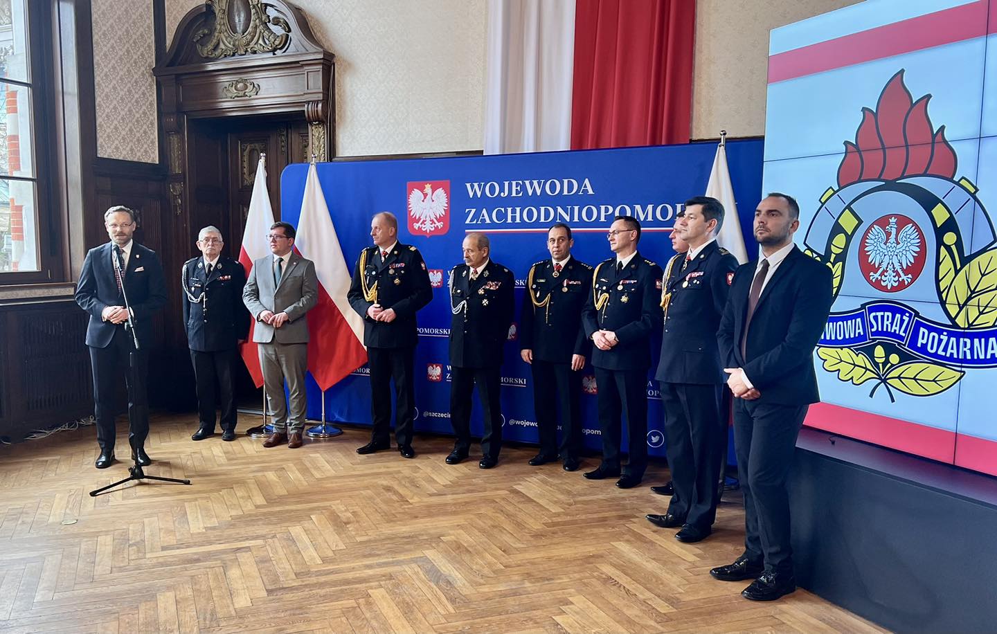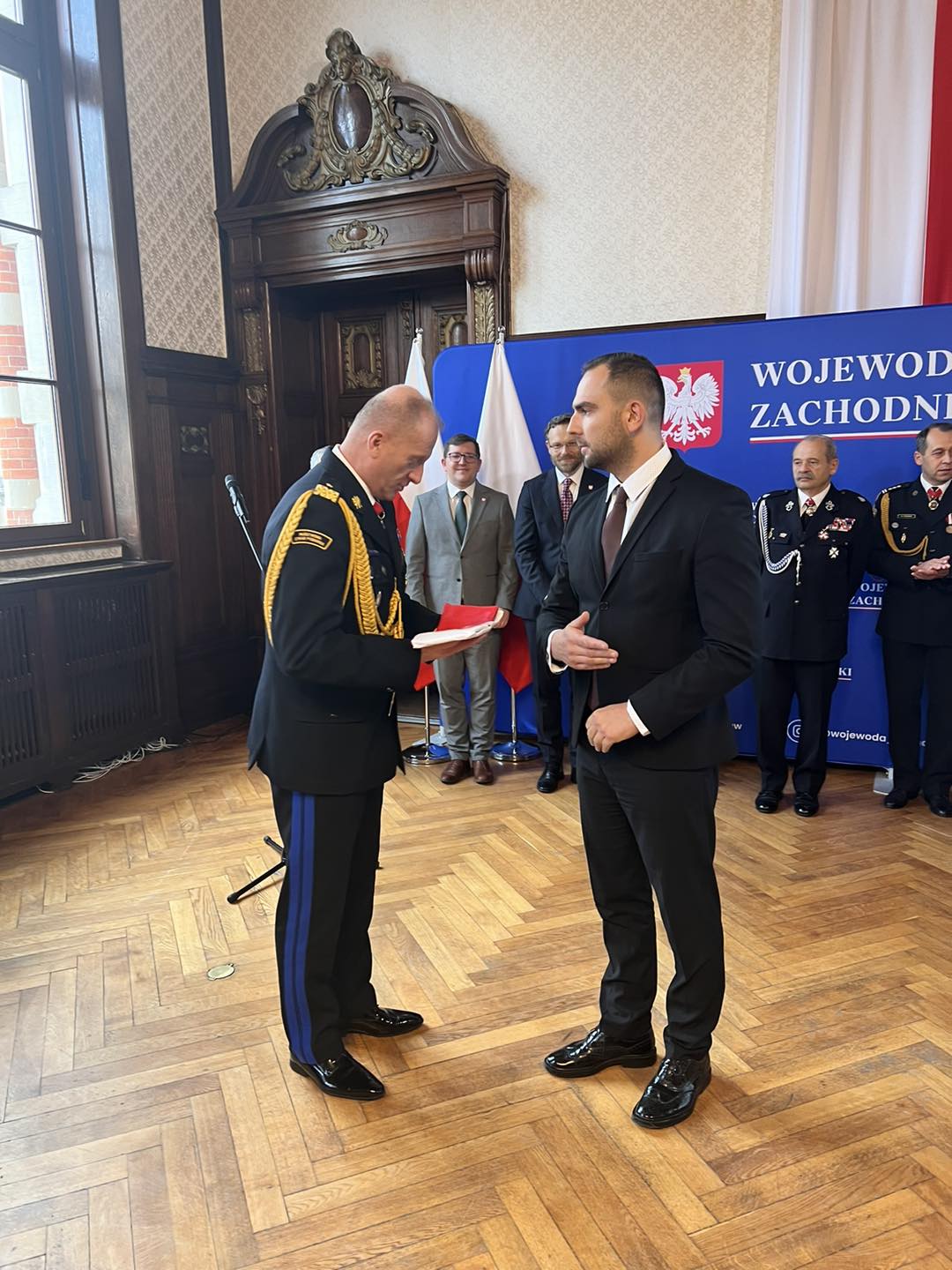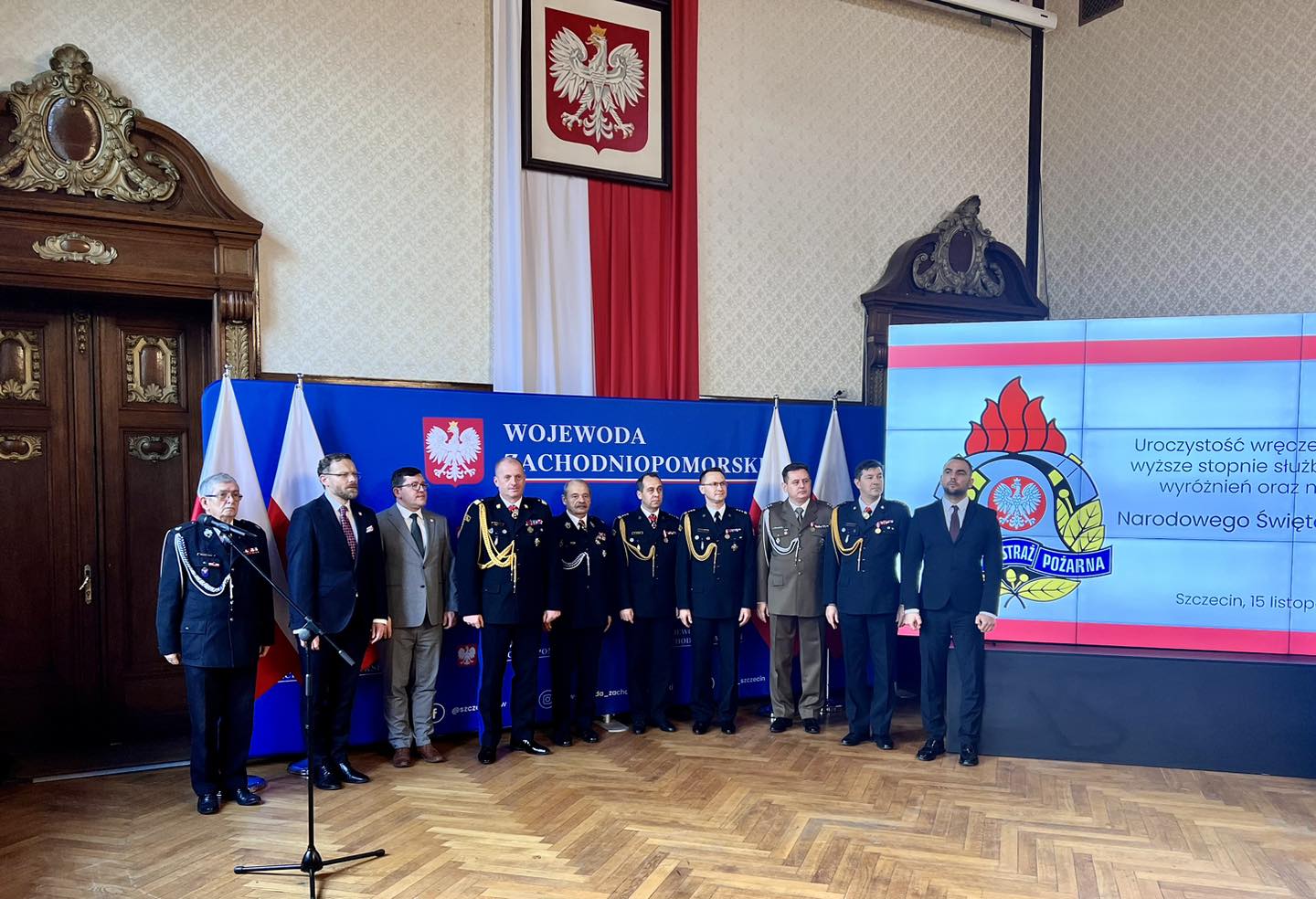 w dniu 15 listopada br. w Sali Rycerskiej Zachodniopomorski Urząd Wojewódzki odbyła się uroczystość wręczenia awansów na wyższe stopnie służbowe, odznaczeń, wyróżnień oraz nagród. Udział w uroczystości wzięli: Poseł na Sejm Rzeczypospolitej Polskiej Zbigniew Bogucki, II Wice Wojewoda Zachodniopomorski Mateusz Wagemann - Wicewojewoda Zachodniopomorski, Zachodniopomorski Komendant Wojewódzki Państwowa Straż Pożarna