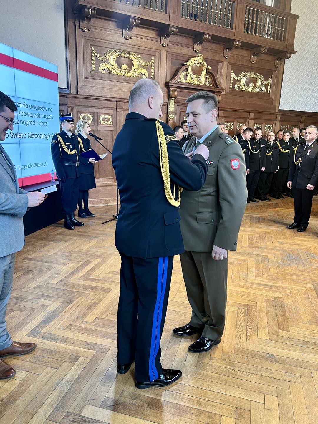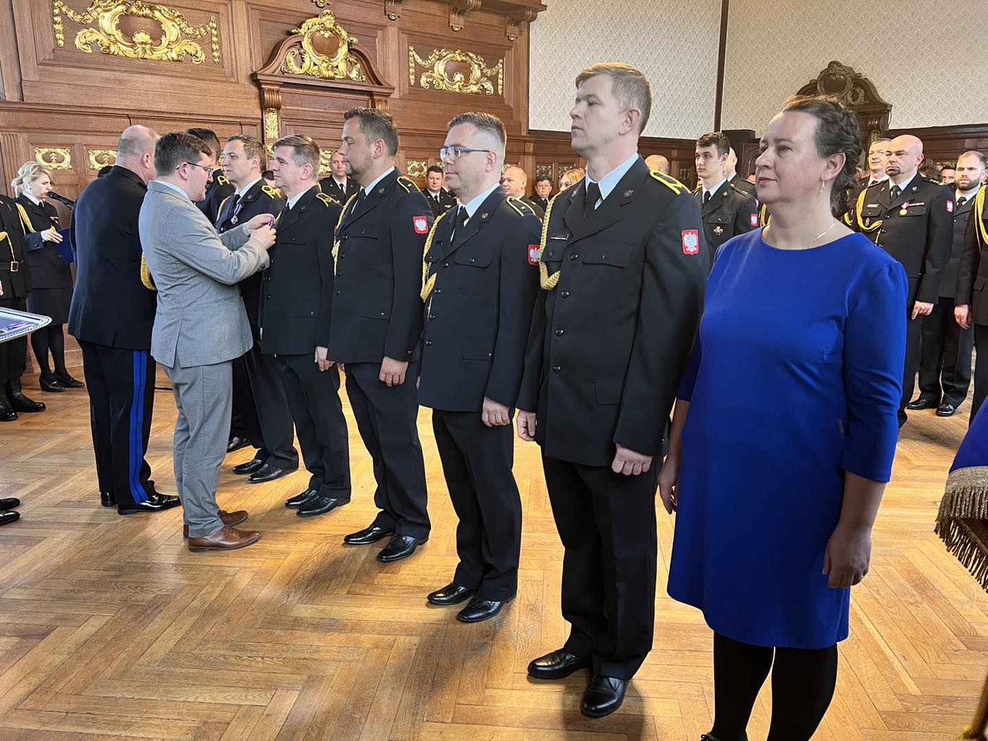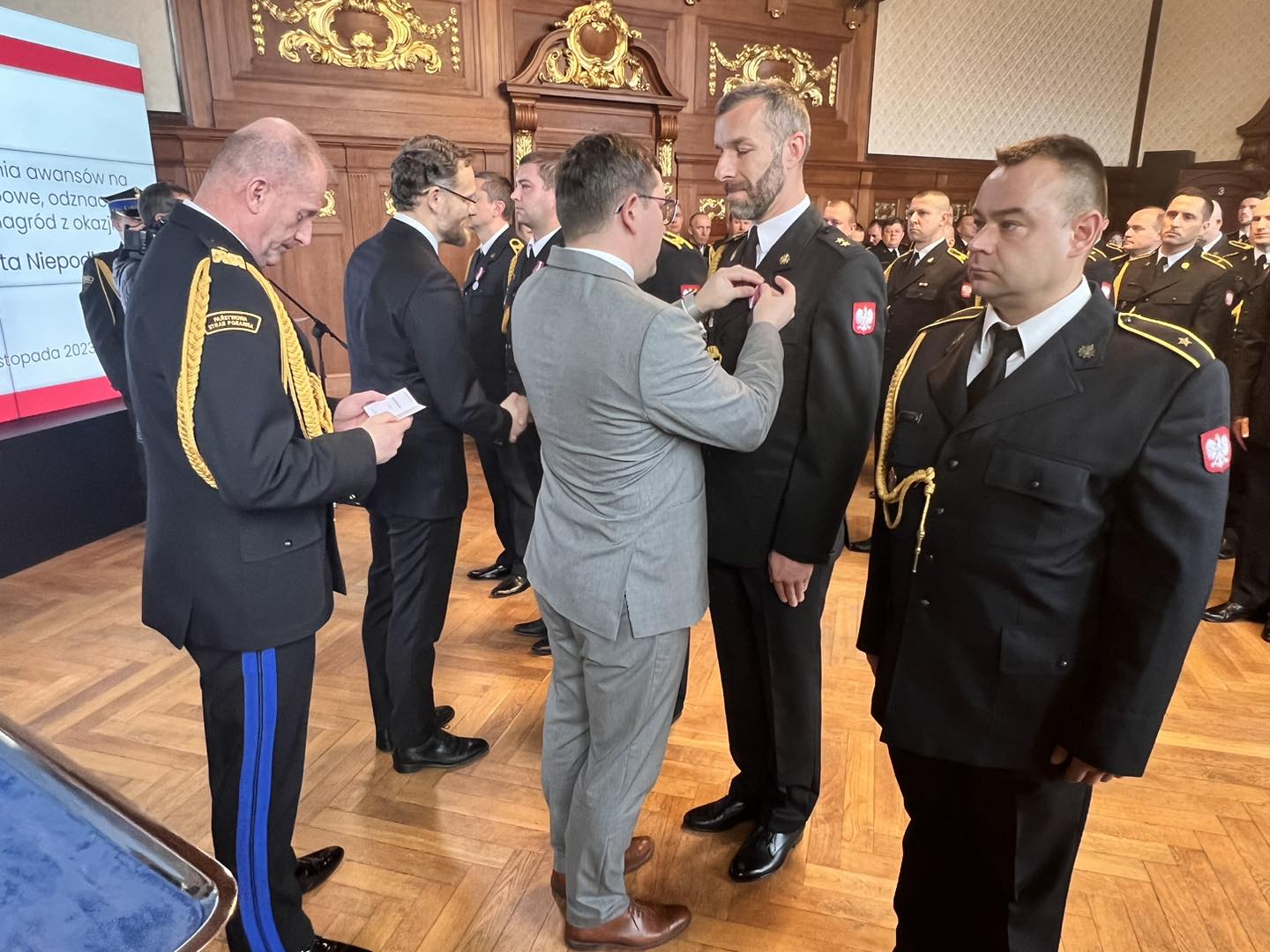 w dniu 15 listopada br. w Sali Rycerskiej Zachodniopomorski Urząd Wojewódzki odbyła się uroczystość wręczenia awansów na wyższe stopnie służbowe, odznaczeń, wyróżnień oraz nagród. Udział w uroczystości wzięli: Poseł na Sejm Rzeczypospolitej Polskiej Zbigniew Bogucki, II Wice Wojewoda Zachodniopomorski Mateusz Wagemann - Wicewojewoda Zachodniopomorski, Zachodniopomorski Komendant Wojewódzki Państwowa Straż Pożarna