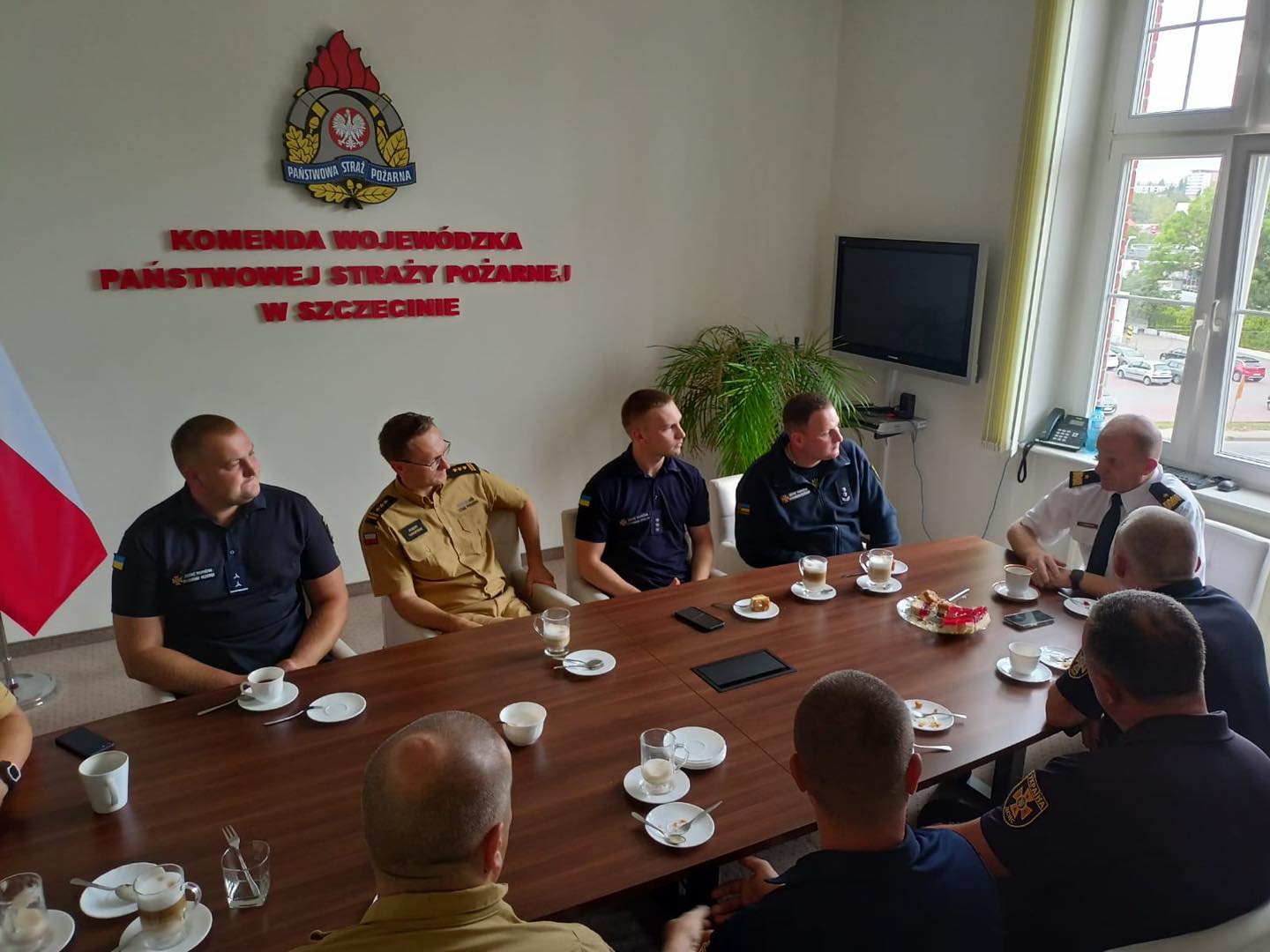 strażacy zapoznali się z taktyką działań podczas pożarów wewnętrznych oraz ratownictwa wodno-nurkowego. Delegacja z Ukrainy odwiedziła kilka jednostek ratowniczo-gaśniczych, ochotniczych straży pożarnych z terenu woj. zachodniopomorskiego oraz jednostkę Portowej Straży Pożarnej Zarząd Morskich Portów Szczecin- Świnoujście, Ukraińscy strażacy spotkali się również z Zachodniopomorskim Komendantem Wojewódzkim Państwowa Straż Pożarna w Szczecinie nadbrygadierem Jarosławem Tomczykiem. Mamy nadzieję, że wymiana wiedzy oraz doświadczeń przyczyni się do podniesienia bezpieczeństwa w obu regionach.