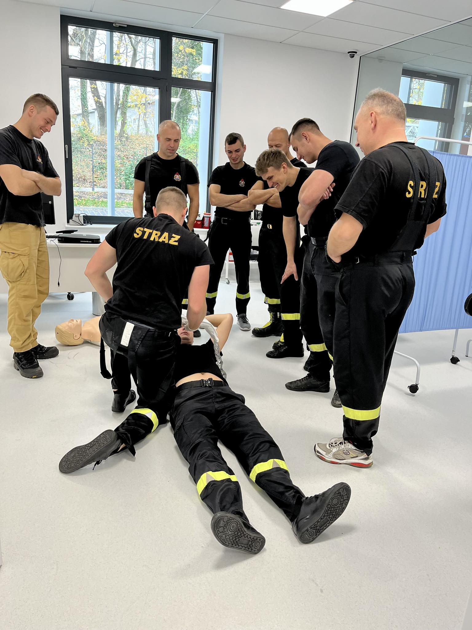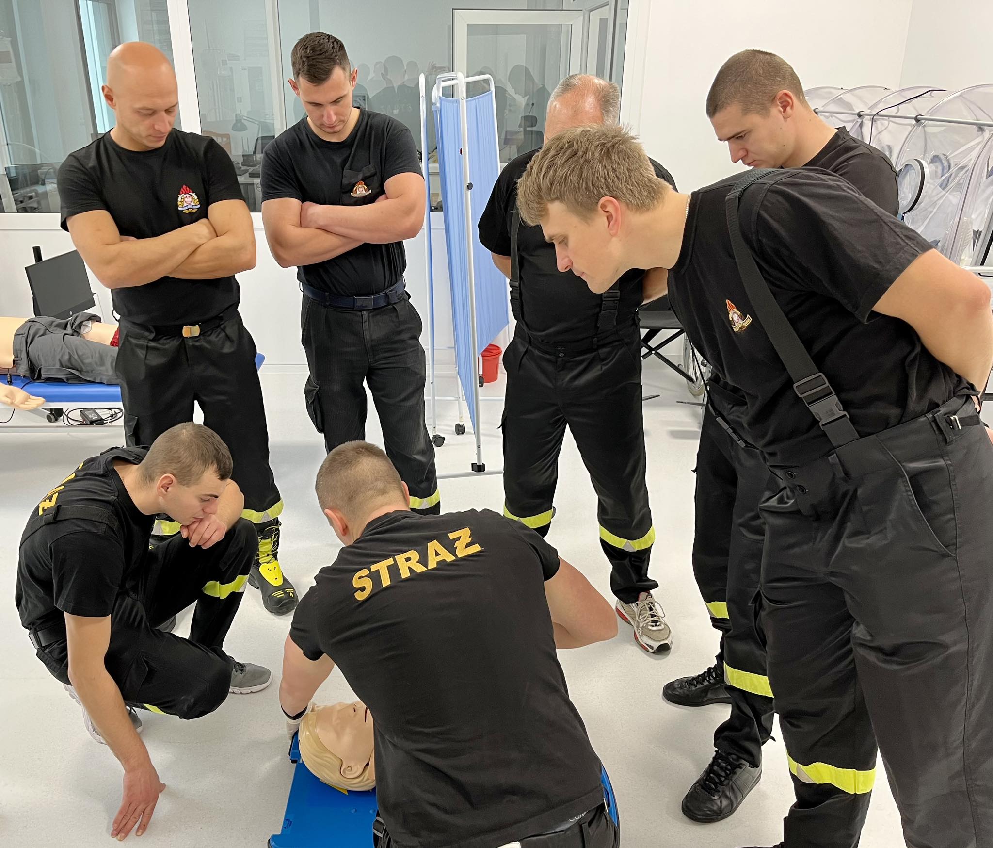 Wizyta w Centrum Symulacji Medycznych strażaków Komendy Miejskiej Państwowej Straży Pożarnej w Szczecinie. Szkolili się m.in. z udrażniania dróg oddechowych, badania urazowego oraz zasad ewakuacji pacjenta będącego w stanie zagrożenia życia. Dziękujemy za możliwość skorzystania z infrastruktury obiektu oraz liczymy na dalszą owocną współpracę.