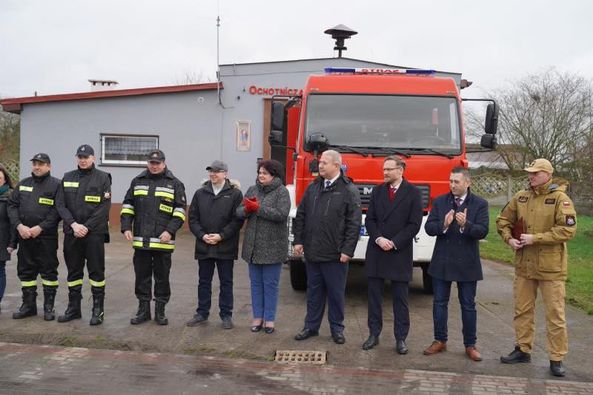 Ochotnicza Straż Pożarna Darżewo otrzymała w dniu dzisiejszym samochód ratowniczo-gaśniczy z napędem terenowym, zbiornikiem na wodę o pojemności 2000 l, działkiem wodno-pianowym o wydajności 800-2400 l/min, linią szybkiego natarcia (60m) GPS i dodatkowym wyposażeniem. Samochód przekazany został przez Zachodniopomorskiego Komendanta Wojewódzkiego Państwowej Straży Pożarnej st. bryg. Jarosława Tomczyka wraz z Zbigniewem Boguckim - Wojewodą Zachodniopomorskim. To kolejne wsparcie druhen I druhów, którzy razem ze strażakami z Komenda Powiatowa Państwowej Straży Pożarnej w Gryficach dbają o bezpieczeństwo mieszkańców Powiat Gryficki.