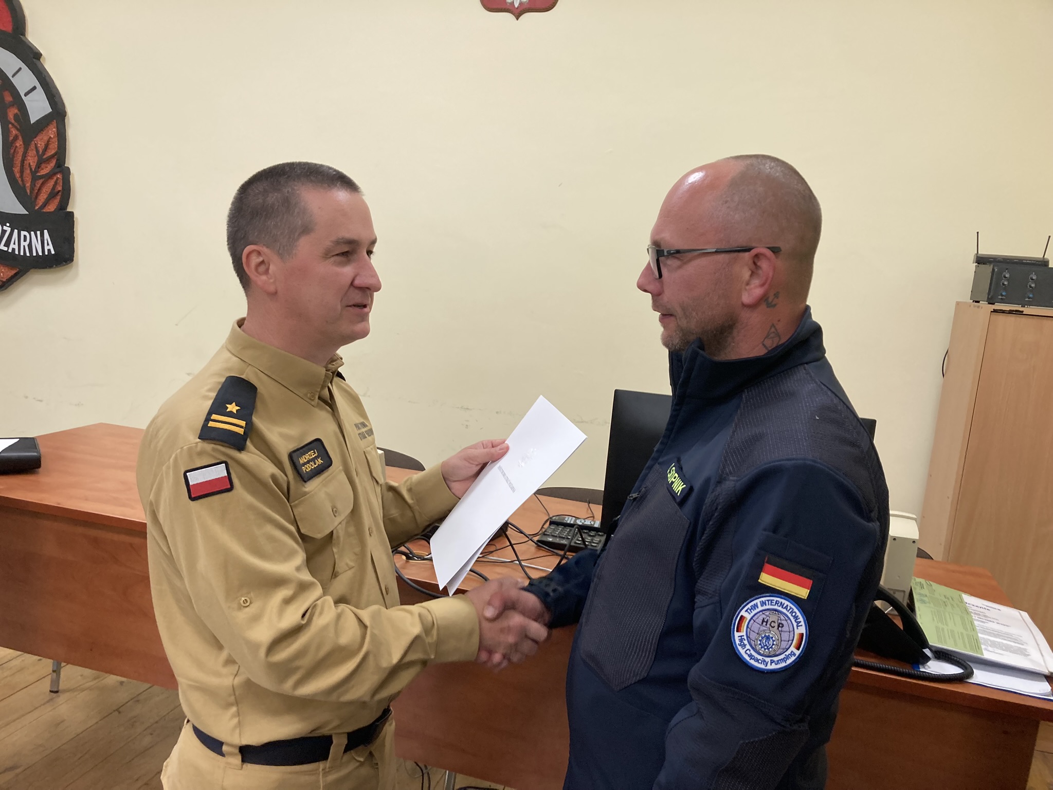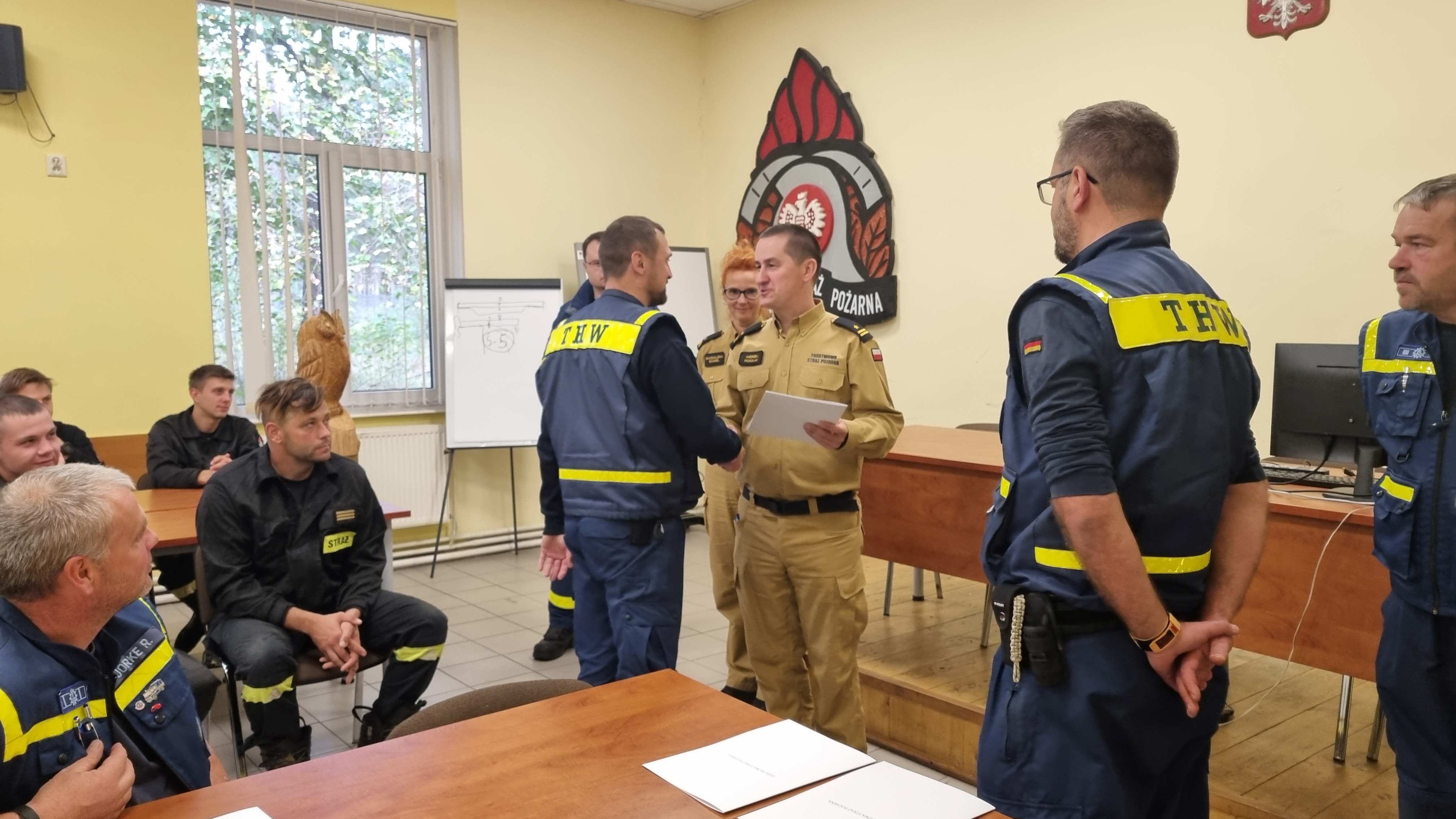 Na koniec warsztatów, z-ca zachodniopomorskiego komendanta wojewódzkiego Państwowej Straży Pożarnej mł. bryg. Andrzej Podolak wszystkim serdecznie podziękował. Szczególne słowa uznania skierował do instruktorów THW, za przygotowanie merytoryczne, instruktarzowe i zajęcia praktyczne. Podziękowania skierowane były również do grona tłumaczy oraz kadry PSP. Po zakończeniu wszyscy wyruszyli w drogę powrotną do jednostek macierzystych.