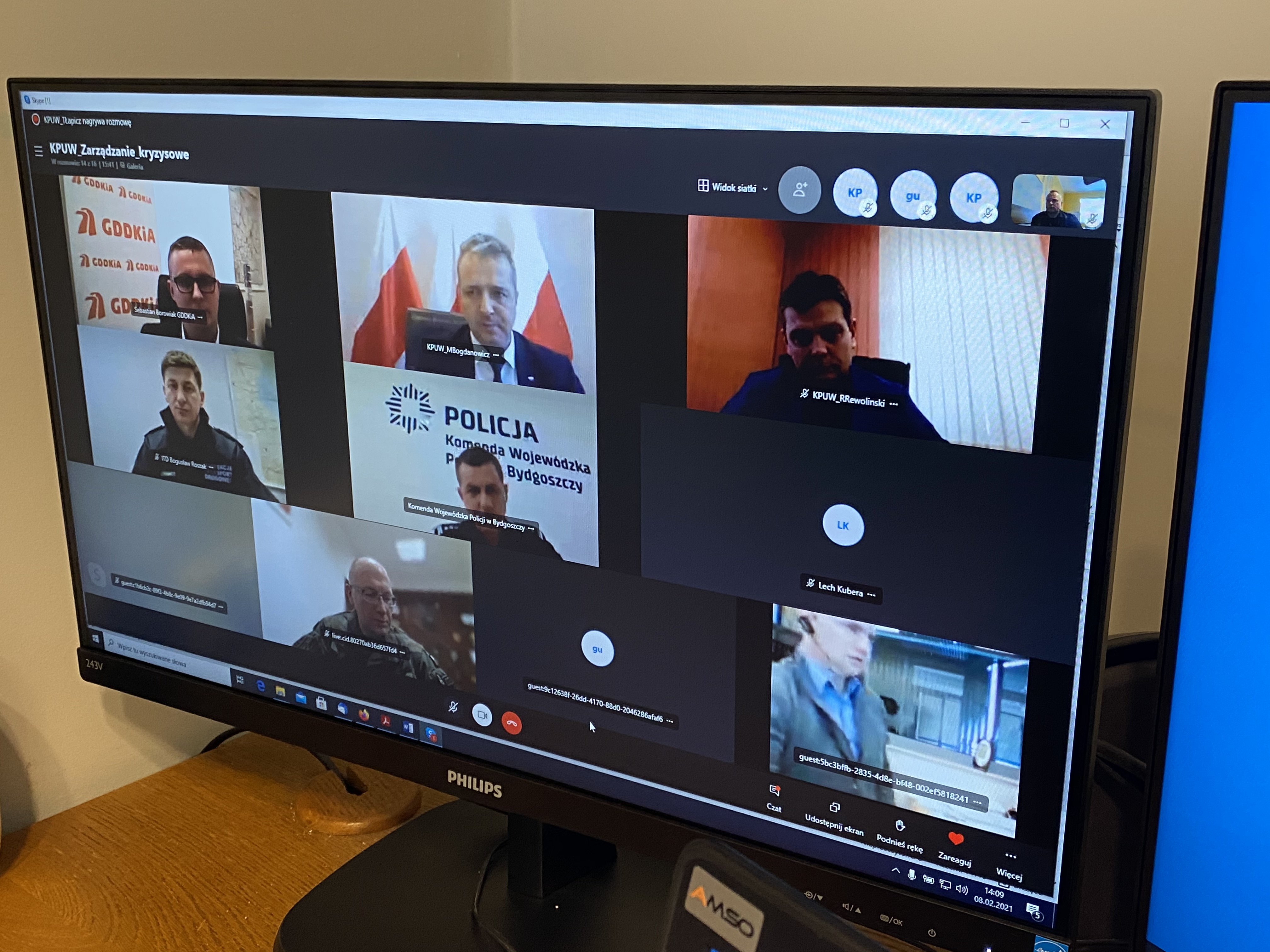 8 lutego 2021 r., za sprawą wideokonferencji, odbyło się zdalne posiedzenie sztabu kryzysowego z udziałem wojewody kujawsko-pomorskiego Mikołaja Bogdanowicza i szefów służb odpowiedzialnych za bezpieczeństwo w regionie. W posiedzeniu uczestniczył Zastępca Kujawsko-Pomorskiego Komendanta Wojewódzkiego PSP st. bryg. Robert Wiśniewski.