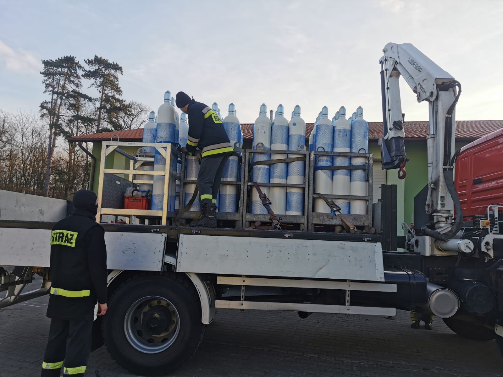 Kujawsko-pomorscy strażacy od samego początku na różnych frontach wspierają działania związane z walką, z pandemią koronawirusa. Między innymi w ramach takich działań już w listopadzie ubiegłym roku podjęto czynności zmierzające do uruchomienia tzw. banków tlenowych na bazie wyznaczonych obiektów Państwowej Straży Pożarnej. W naszym województwie bank tlenowy przygotowany został w oparciu o obiekty JRG nr 3 Komendy Miejskiej PSP w Toruniu oraz Ośrodka Szkolenia Komendy Wojewódzkiej PSP w Łubiance. Bank działa w koordynacji z Wydziałem Bezpieczeństwa i Zarządzania Kryzysowego Kujawsko-Pomorskiego Urzędu Wojewódzkiego. Baza tlenu funkcjonuje całodobowo - dysponuje możliwością pilnego i nagłego dowozu medium do wskazanej placówki, z załadunkiem i rozładunkiem na miejscu. W chwili obecnej na stanie banku w woj. kujawsko-pomorskim jest 251 butli 50-litrowych, 100 butli 40-litrowych oraz 138 butli 10-litrowych.