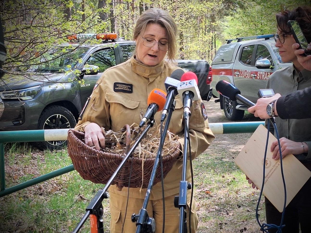 Na konferencję prasową, do lasu w pobliżu szkółki leśnej Bielawy w Toruniu, przyjechali dziennikarze, gdzie Honorata Galczewska i st. bryg. Małgorzata Jarocka-Krzemkowska, przedstawiły wspólny interes w zakresie ochrony lasu, ostrzegały przed zagrożeniami w jego otoczeniu i namawiały do odpowiedzialności.