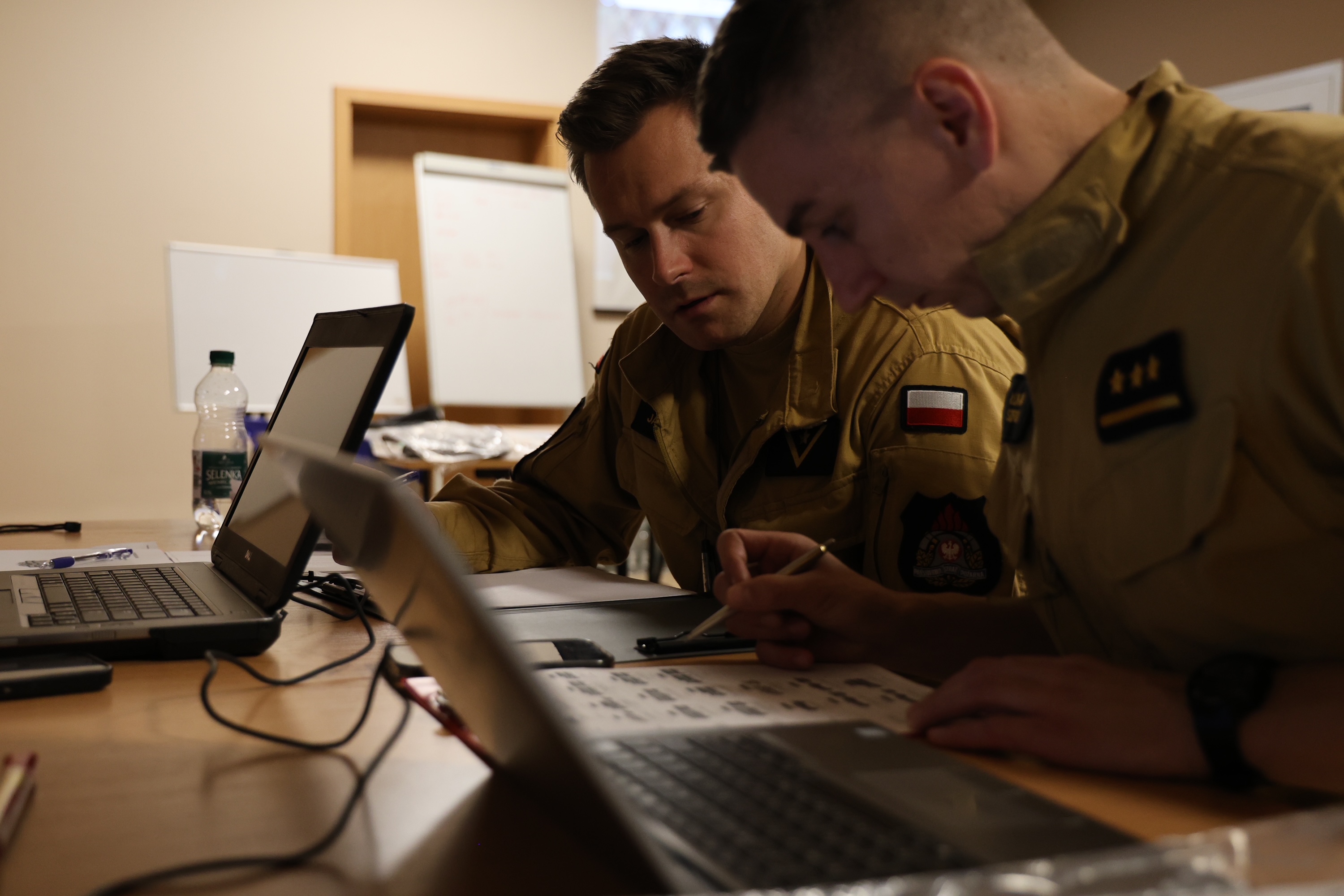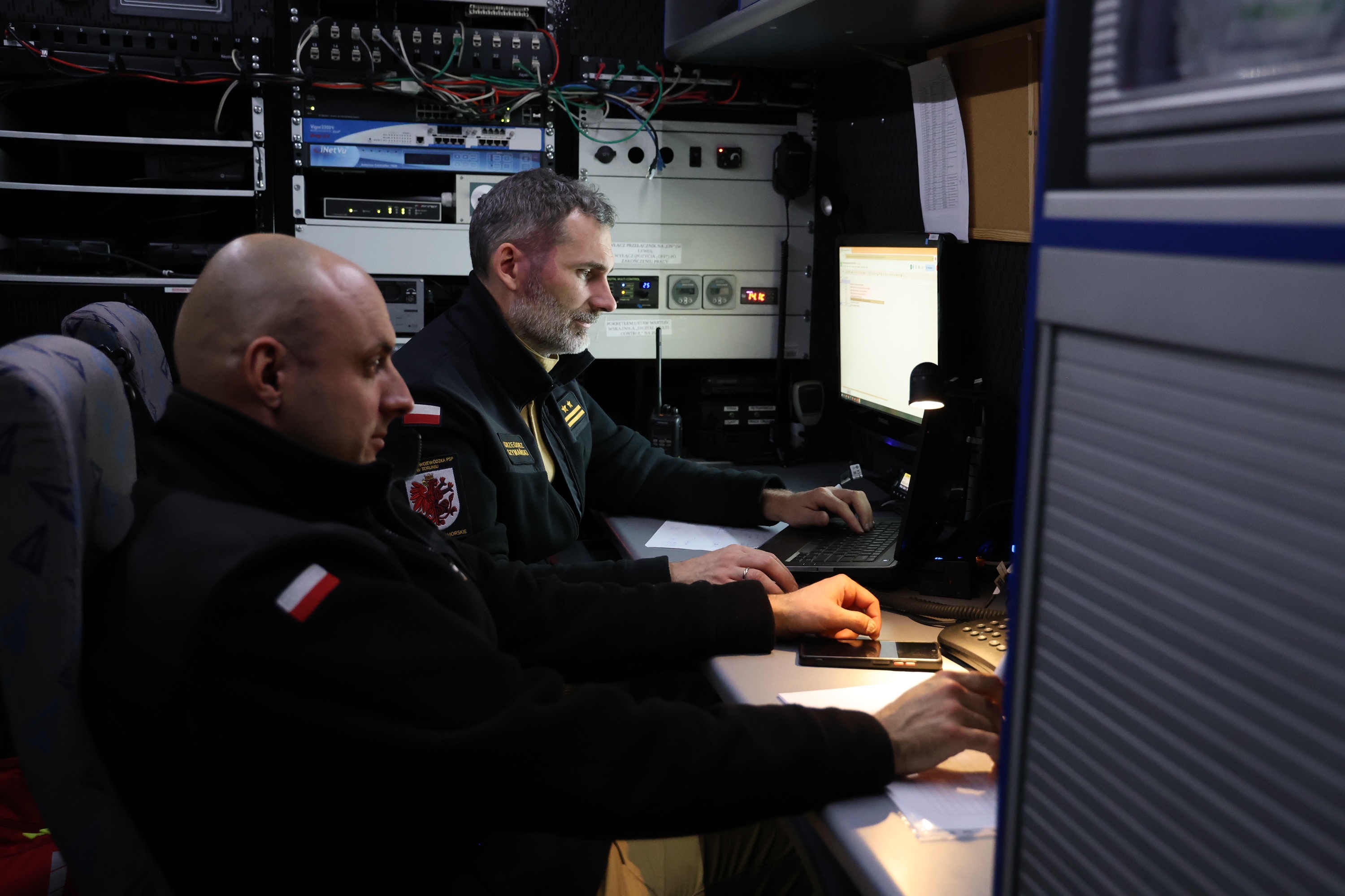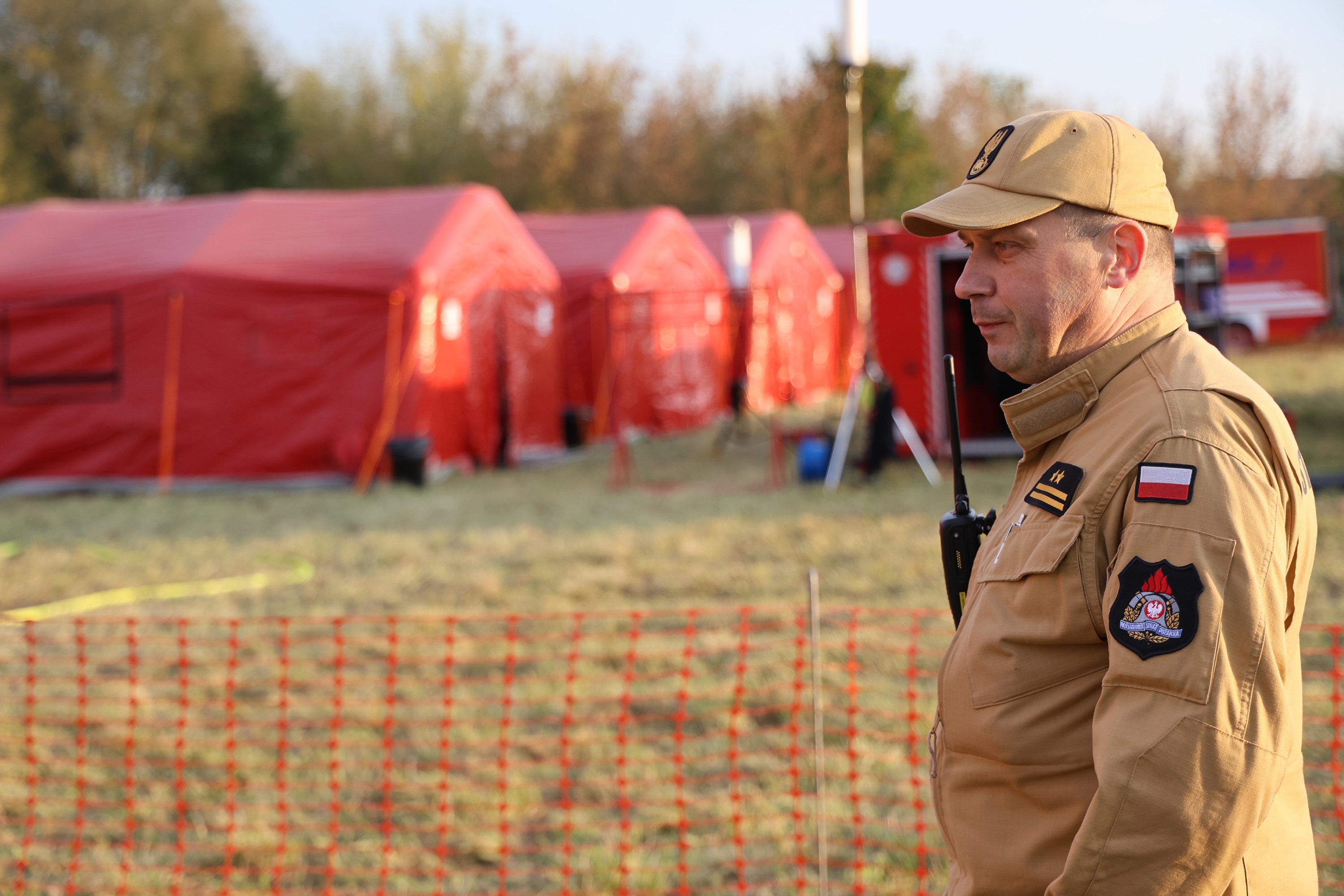 Logistyka PSP ćwiczyła budowę niezbędnej infrastruktury w postaci ogrzewanych namiotów, kontenerów sanitarnych itp., umożliwiając długotrwałe prowadzenie działań ratowniczych.