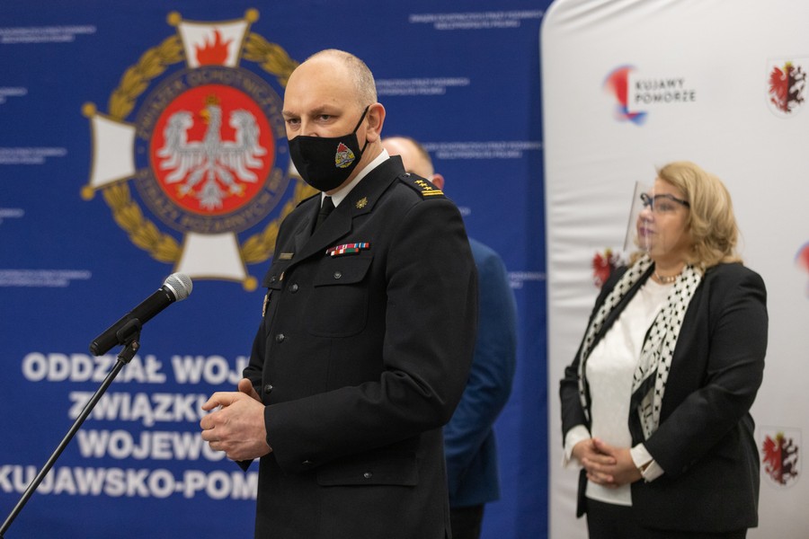 W uroczystości wzięli udział marszałek Piotr Całbecki, przewodnicząca sejmiku województwa Elżbieta Piniewska, wicemarszałek Zbigniew Sosnowski, wiceprezes Kujawsko-Pomorskiego Samorządowego Stowarzyszenia Salutaris Wiesław Czarnecki, dyrektor wojewódzkiego związku Ochotniczej Straży Pożarnej w Toruniu Piotr Tomaszewski, zastępca kujawsko-pomorskiego komendanta wojewódzkiego Państwowej Straży Pożarnej st. bryg. Sławomir Herbowski oraz przedstawiciele jednostek ochotniczych straży pożarnych: Czarże, Dąbrowa Chełmińska, Solec Kujawski (w powiecie bydgoskim), Trzebcz Szlachecki, Unisław (obie w powiecie chełmińskim, Miedzno (powiat świecki), Łubianka (w powiecie toruńskim) oraz Wąbrzeźno.