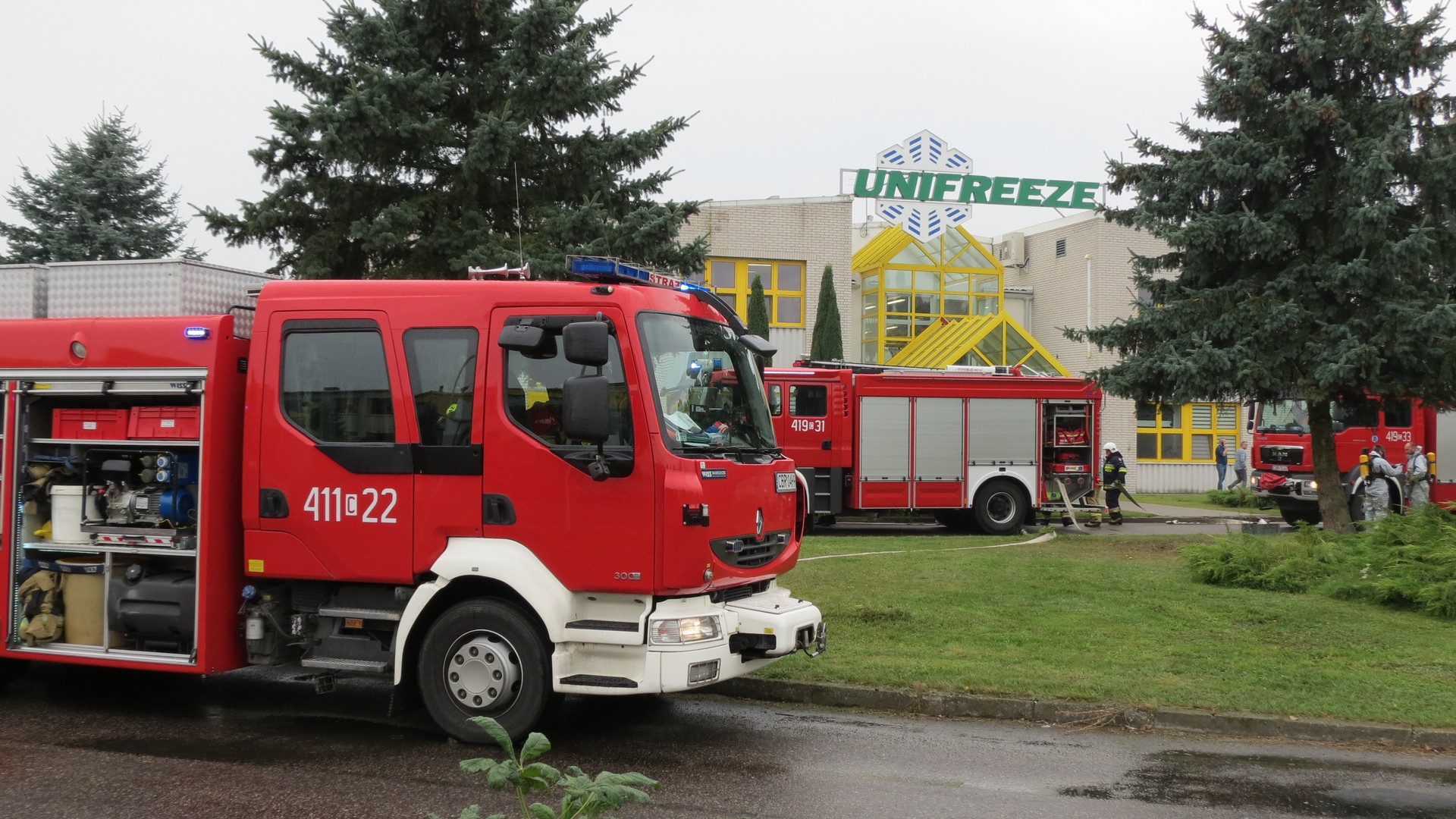 16.09.2021 r. odbyły się ćwiczenia taktyczno-bojowe jednostek ksrg powiatu brodnickiego podczas symulowanego pożaru i rozszczelnienia instalacji chłodniczej, z której wydostawał się pod ciśnieniem amoniak na terenie zakładu produkcyjno-magazynowego UNIFREEZE w Miesiączkowie.