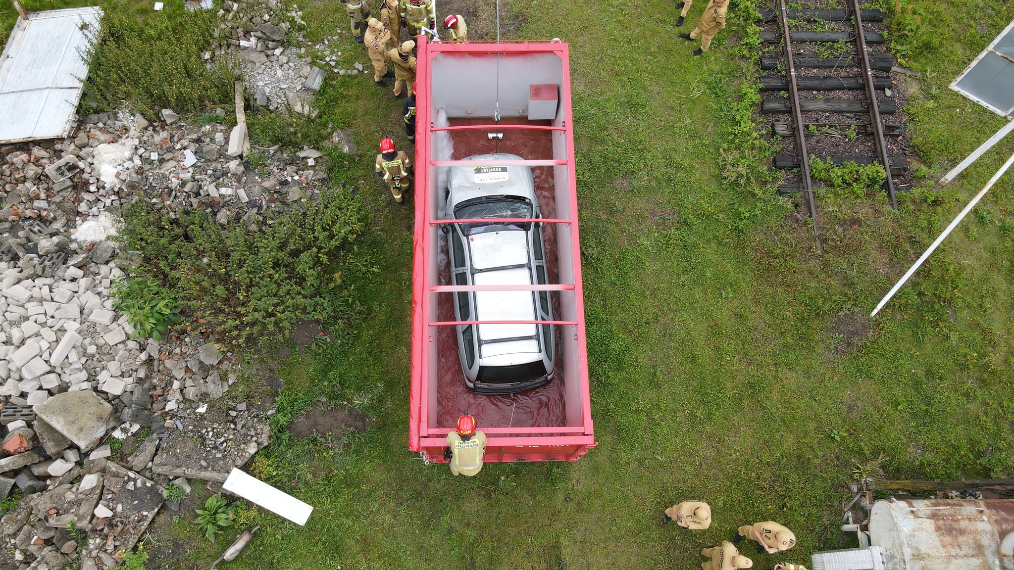 Ćwiczenia z wykorzystaniem kontenera do gaszenia pojazdów elektrycznych