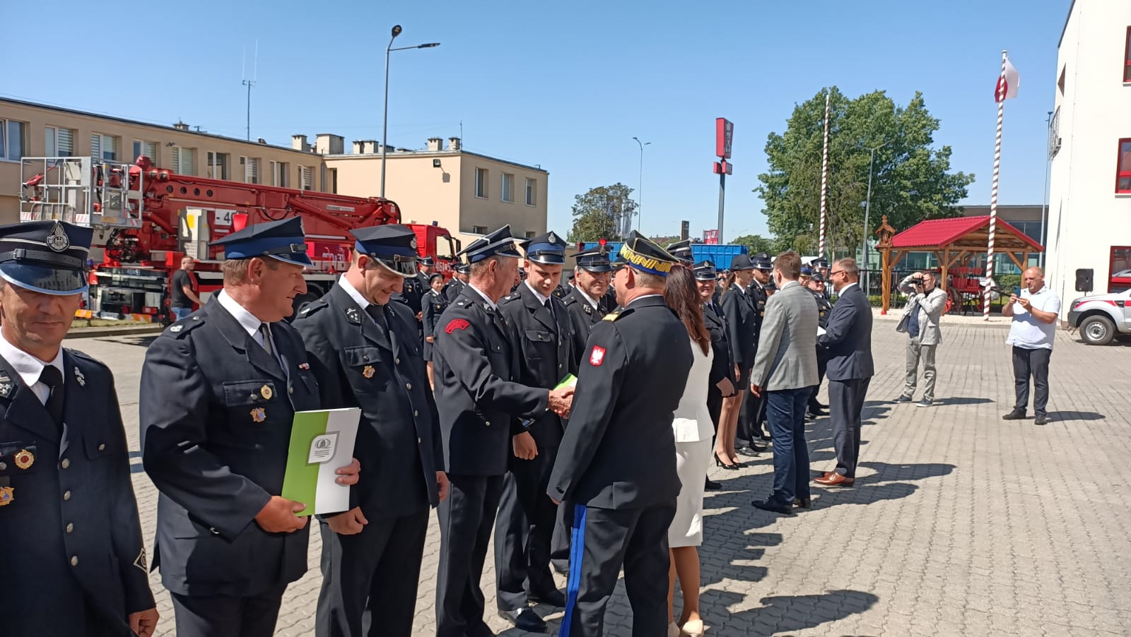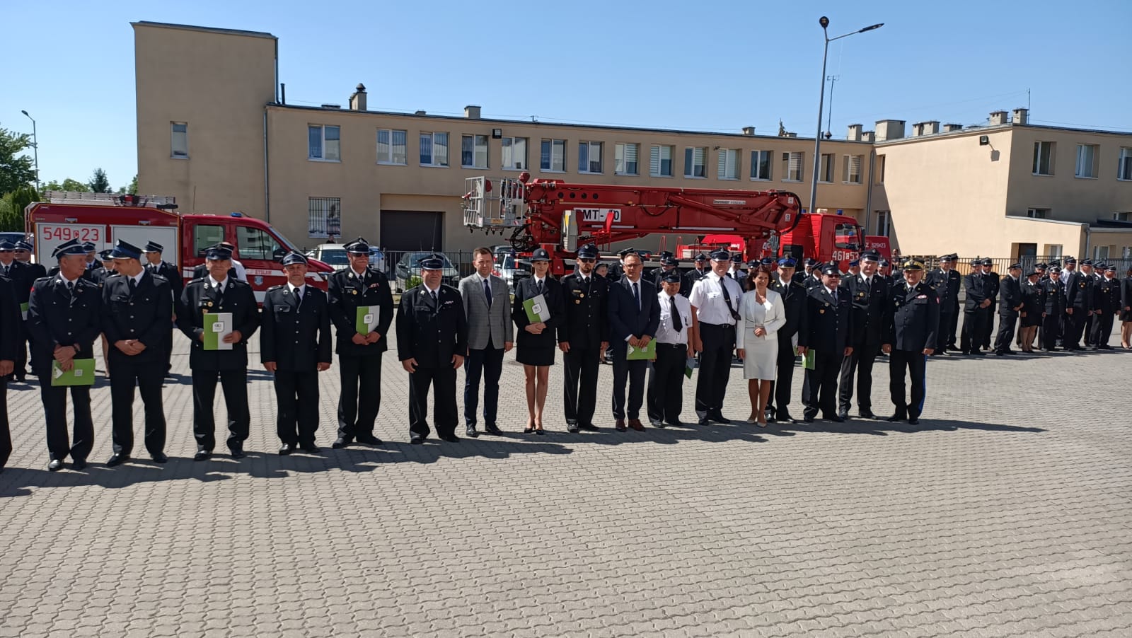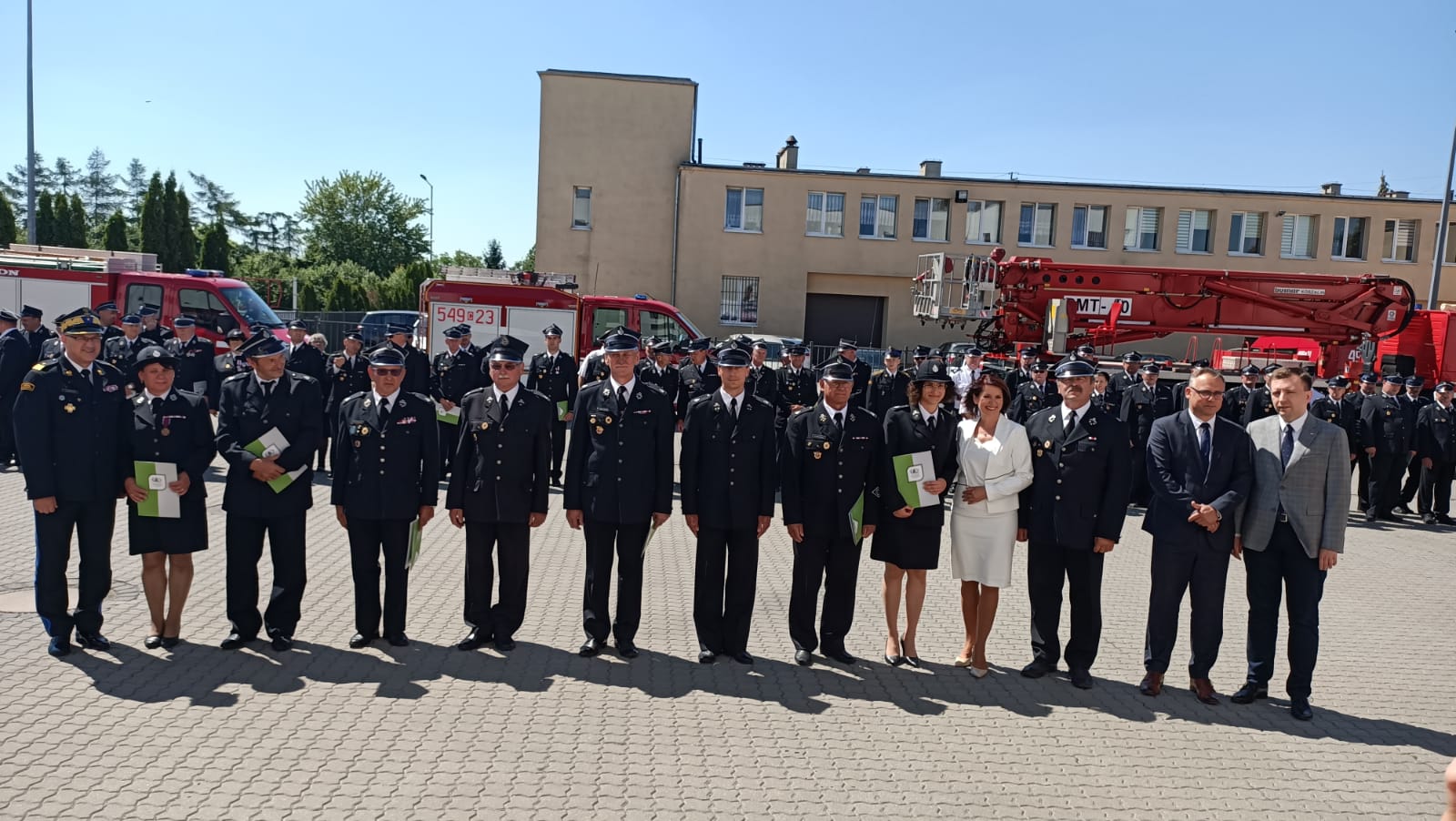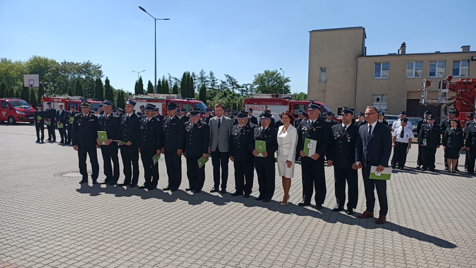 24 czerwca br., na placu komendy powiatowej PSP w Inowrocławiu druhowie ochotniczych straży pożarnych z regionu odebrali listy gratulacyjne z okazji przyznanych im dotacji w ramach Programów Wojewódzkiego Funduszu Ochrony Środowiska i Gospodarki Wodnej w Toruniu, pod nazwą "Mały Strażak" i "EKO Strażak". Obok Prezesa WFOŚiGW Ireneusza Stachowiaka, wydarzeniu udział wzięli m.in.: Minister Łukasz Szchreiber, Poseł na Sejm RP Ewa Kozanecka oraz Kujawsko-Pomorski Komendant Wojewódzki PSP nadbryg. Jacek Kaczmarek, Prezes Oddziało Powiatowego ZOSP RP w Inowrocławki dh Jarosław Kaczmarek.
