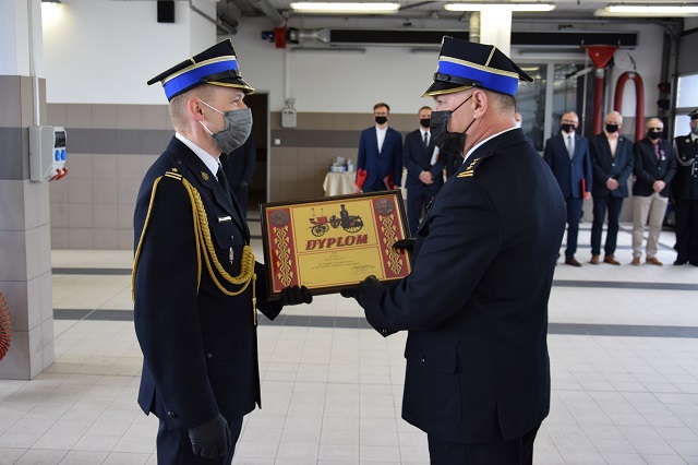 Komendant Główny Państwowej Straży Pożarnej za wzorową postawę i wysokie osiągnięcia w realizację zadań służbowych uhonorował dyplomem mł. bryg. Piotra Rogowskiego.