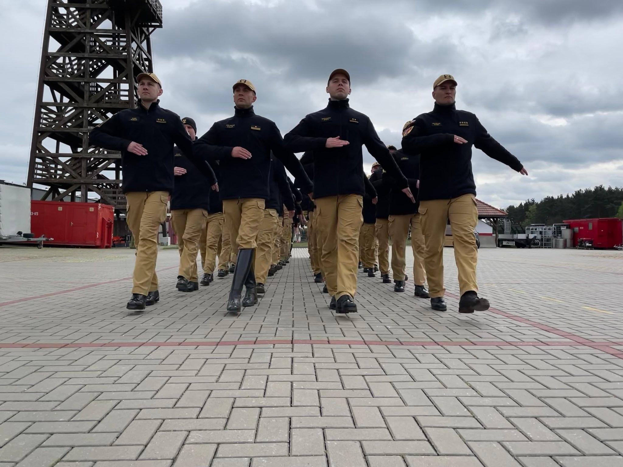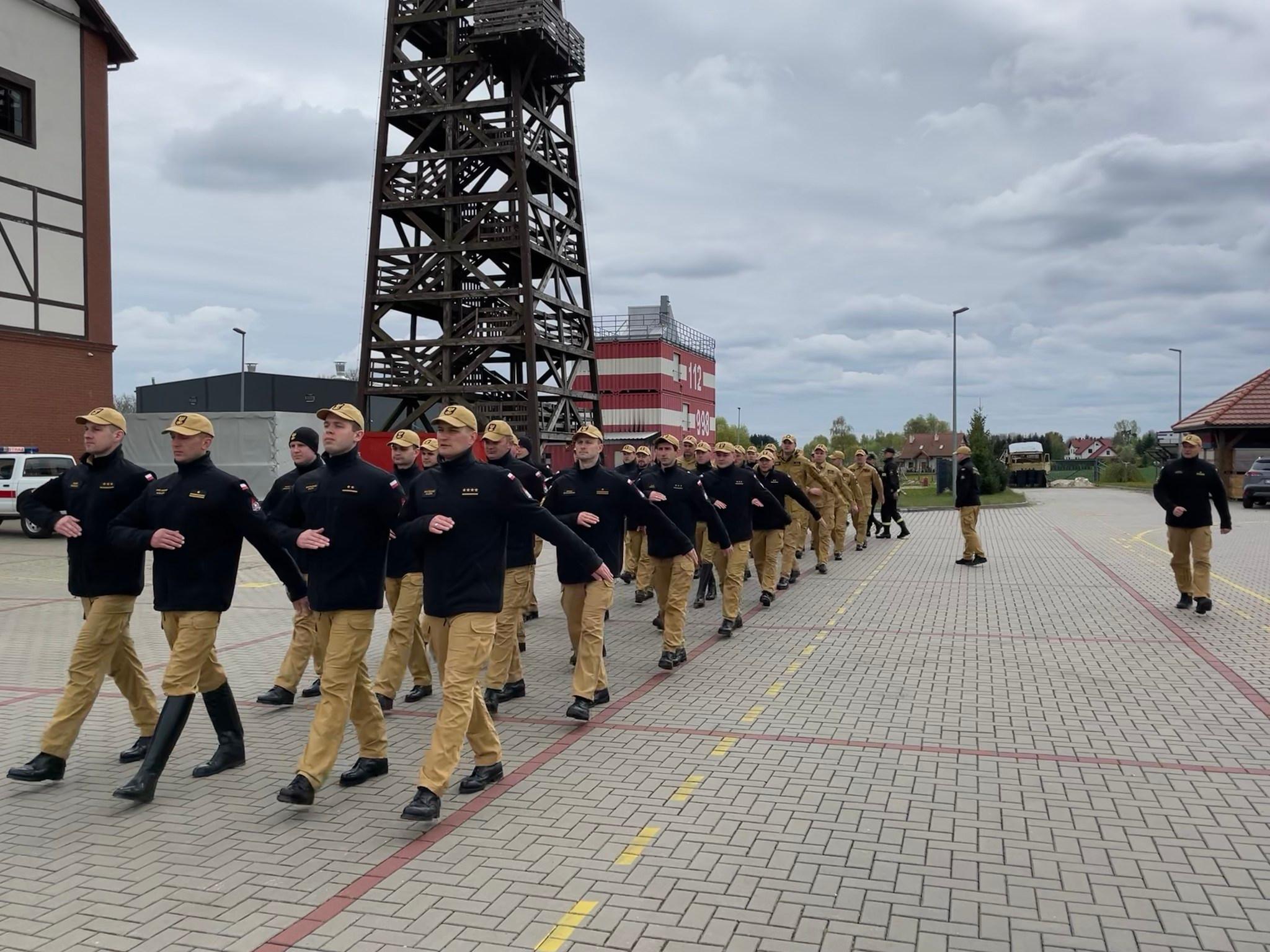 Szkolimy się w zakresie musztry i ceremoniału pożarniczego. Pododział reprezentacyjny PSP z kraju ćwiczył w Łubiance.