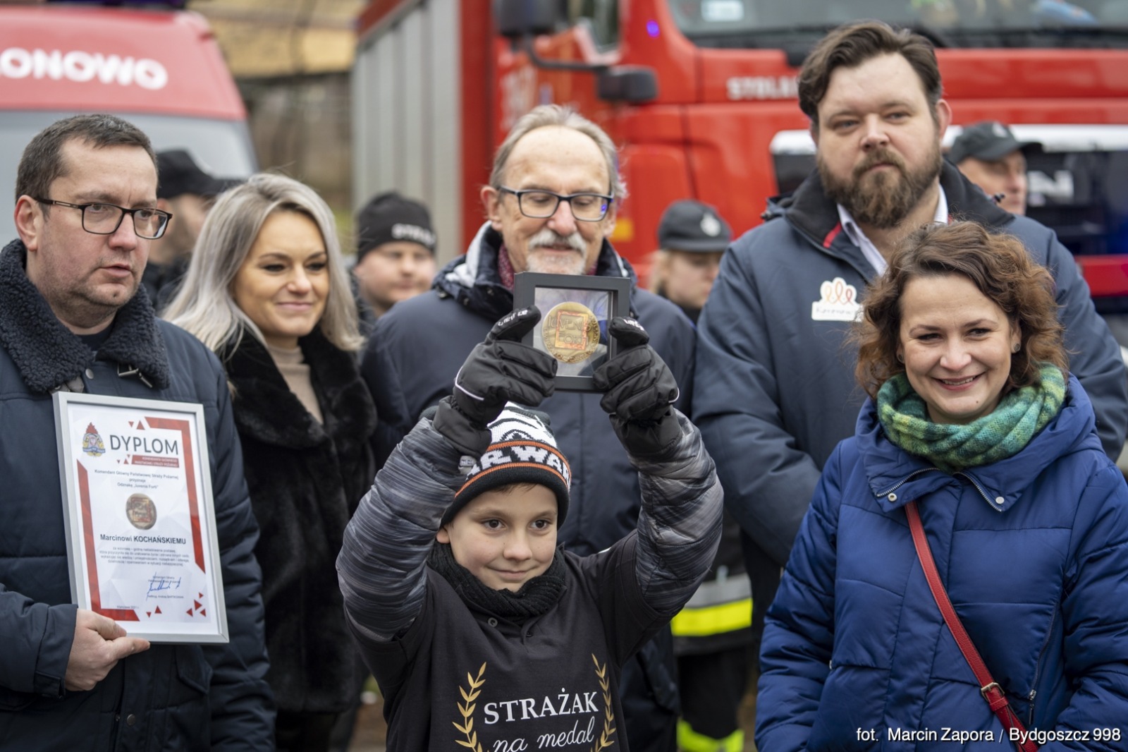 W Koronowie mieszka kolejny bohater, uhonorowany Odznaką Komendanta Głównego PSP "Iuvenis Forti". To 10-letni Marcin Kochański, który 4 grudnia 2021 roku, wieczorem, zgłosił pożar przyczepy kempingowej przy ul. Leśnej w Koronowie. Za sprawą jego opanowanej i pewnej postawy, doskonałym przekazie informacji o zdarzeniu, strażakom udało się szybko dotrzeć na miejsce i podjąć skuteczne działania, zapobiegając tym samym rozprzestrzenieniu się ognia na pobliskie budynki.