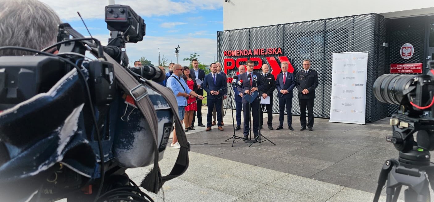 15 września 2025 r., w Grudziądzu, przed nową siedzibą Komendy Miejskiej PSP, odbyła się konferencja prasowa w temacie realizacji ustawy o Ochronie Ludności i Obronie Cywilnej.