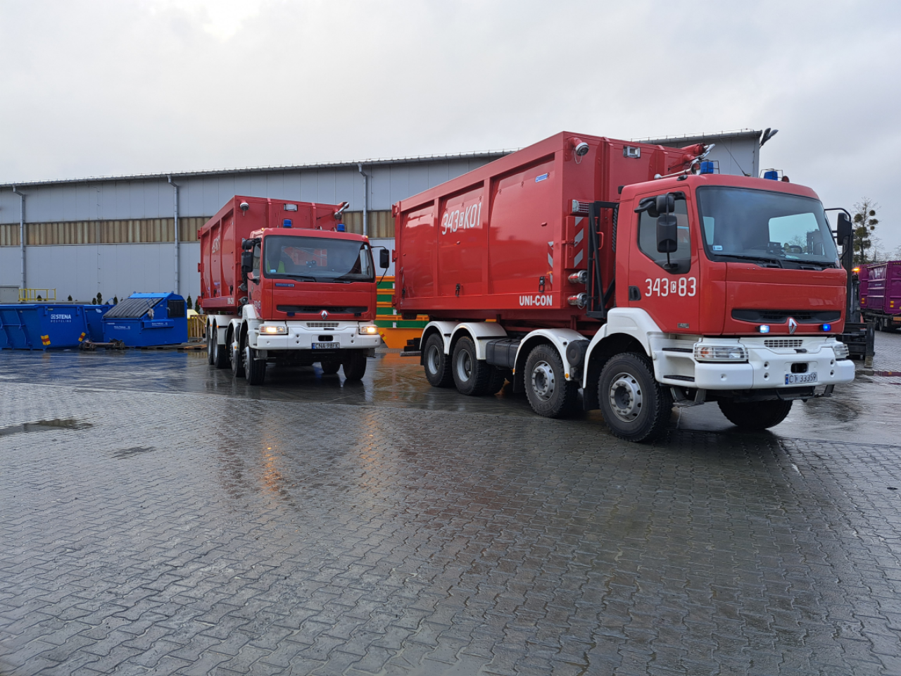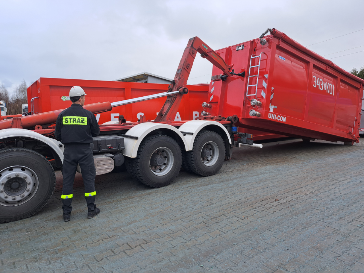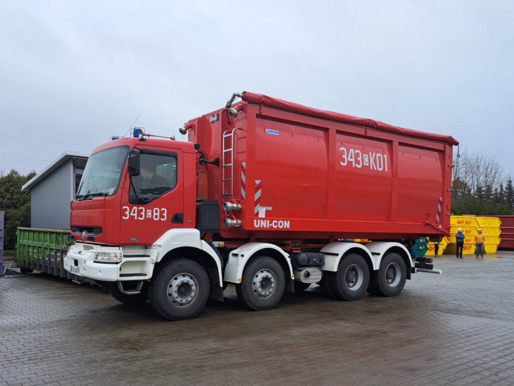 17 grudnia nastąpił dbiór dwóch kontenerów typu UNI-CON, które skonstruowała i kompleksowo przygotowała dla nas firma JK z Bysławia. Firma, jako jeden z największych producentów kontenerów w Europie - skrzyń transportowych do przewozu rozmaitych mediów, przyczyniając się ochronie zdrowia, życia i środowiska naturalnego, przekazała nieodpłatnie sprzęt Państwowej Straży Pożarnej.