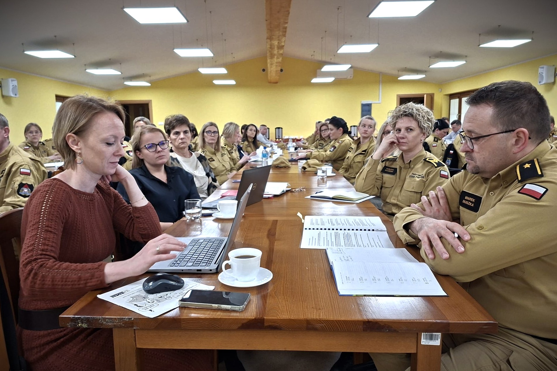 Funkcjonariusze i pracownicy cywilni PSP z komórek logistycznych i finansowych na wspólnej naradzie szkoleniowej