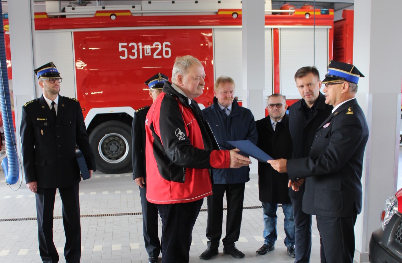 Kujawsko-Pomorski Komendant Wojewódzki PSP st. bryg. Jacek Kaczmarek, a także Komendant Powiatowy PSP st. bryg. Piotr Tkaczyński, złożyli Ministrowi wyjątkowe podziękowania i zaprezentowali obiekt.