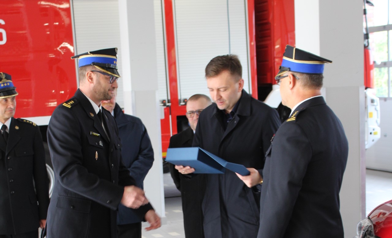Minister Łukasz Schreiber z wizytą u strażaków w Świeciu