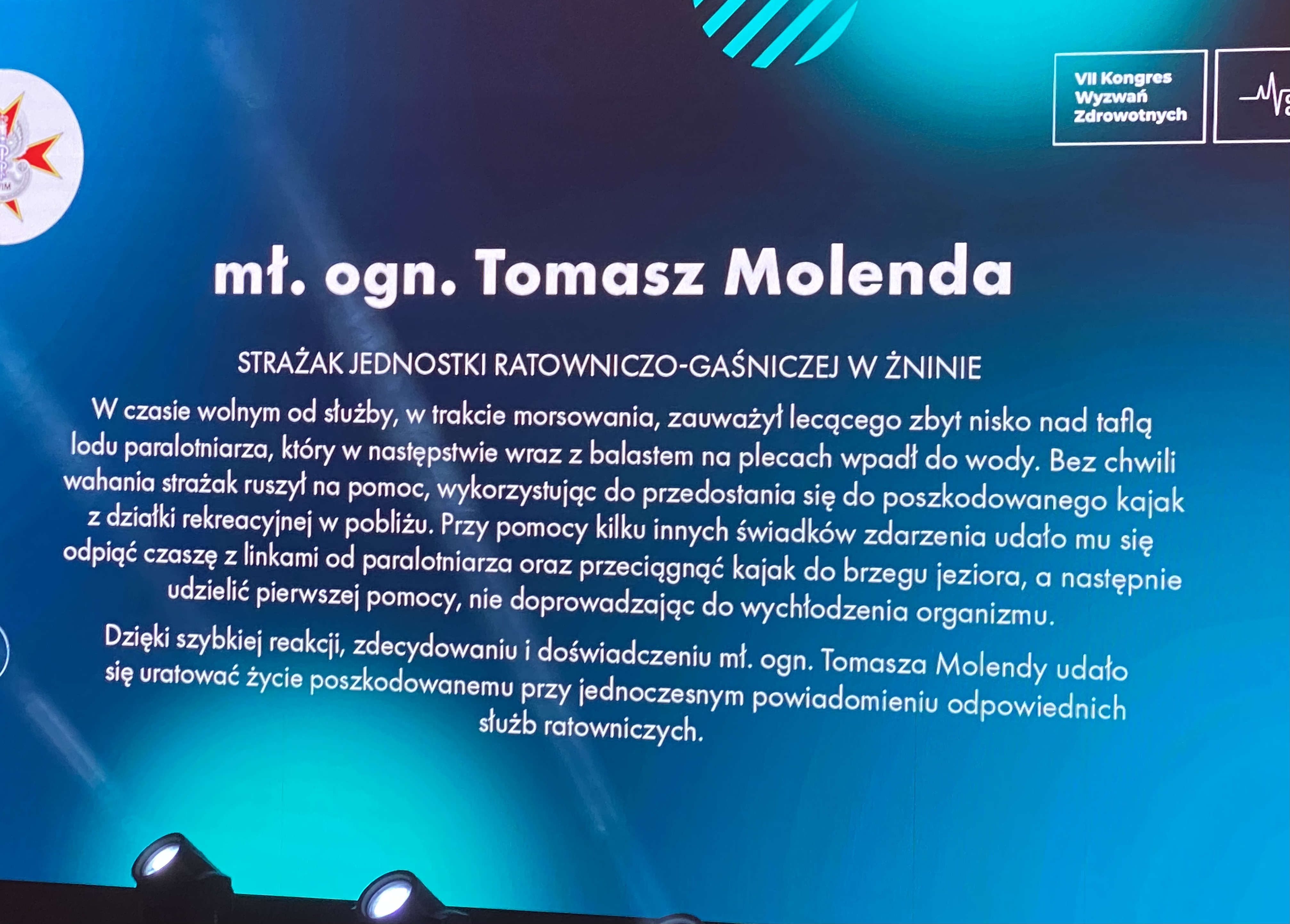 W czwartek, 3 marca 2022 roku funkcjonariusze Komendy PSP w Żninie kpt. Adamowski Łukasz oraz mł. ogn. Tomasz Molenda uczestniczyli w uroczystej Gali VII Kongresu Wyzwań Zdrowotnych w Katowicach, podczas której wręczono Nagrody ANIMUS FORTIS (MĘŻNY DUCH) 2021.