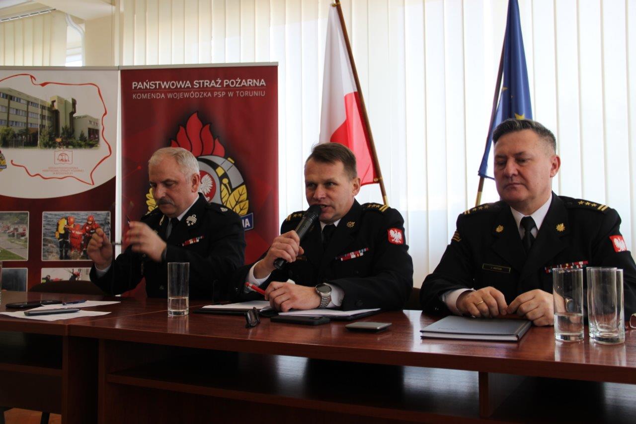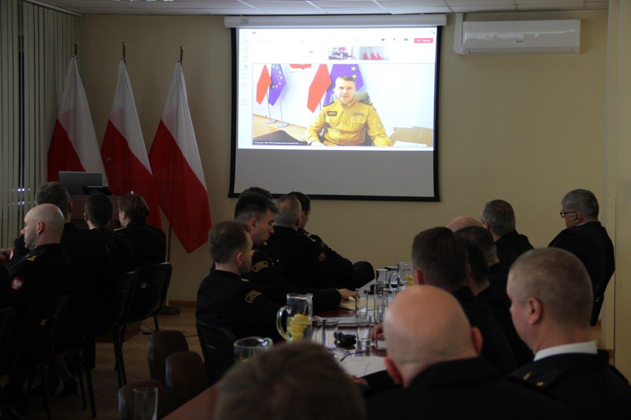 Pełniący obowiązki Kujawsko-Pomorskiego Komendanta Wojewódzkiego PSP st. bryg. Marek Rusoń przedstawił syntetycznie aktualny stan organizacji jednostek ochrony przeciwpożarowych w regionie oraz skalę funkcjonowania krajowego systemu ratowniczo-gaśniczego.Raport przyjął Zastępca Komendanta Głównego PSP bryg. Grzegorz Szyszko, który spotkanie realizował on-line.