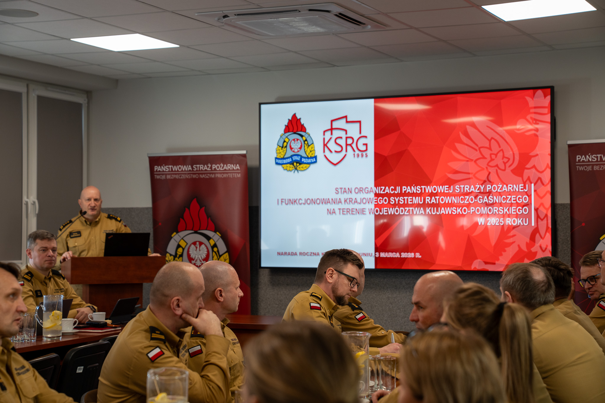 Dnia 3 marca 2026 r., w Szkole Podoficerskiej PSP w Bydgoszczy odbyła się narada roczna kadry kierowniczej Państwowej Straży Pożarnej województwa kujawsko-pomorskiego. Podczas spotkania podsumowano działalność komend powiatowych i miejskich oraz Szkoły Podoficerskiej w minionym roku.