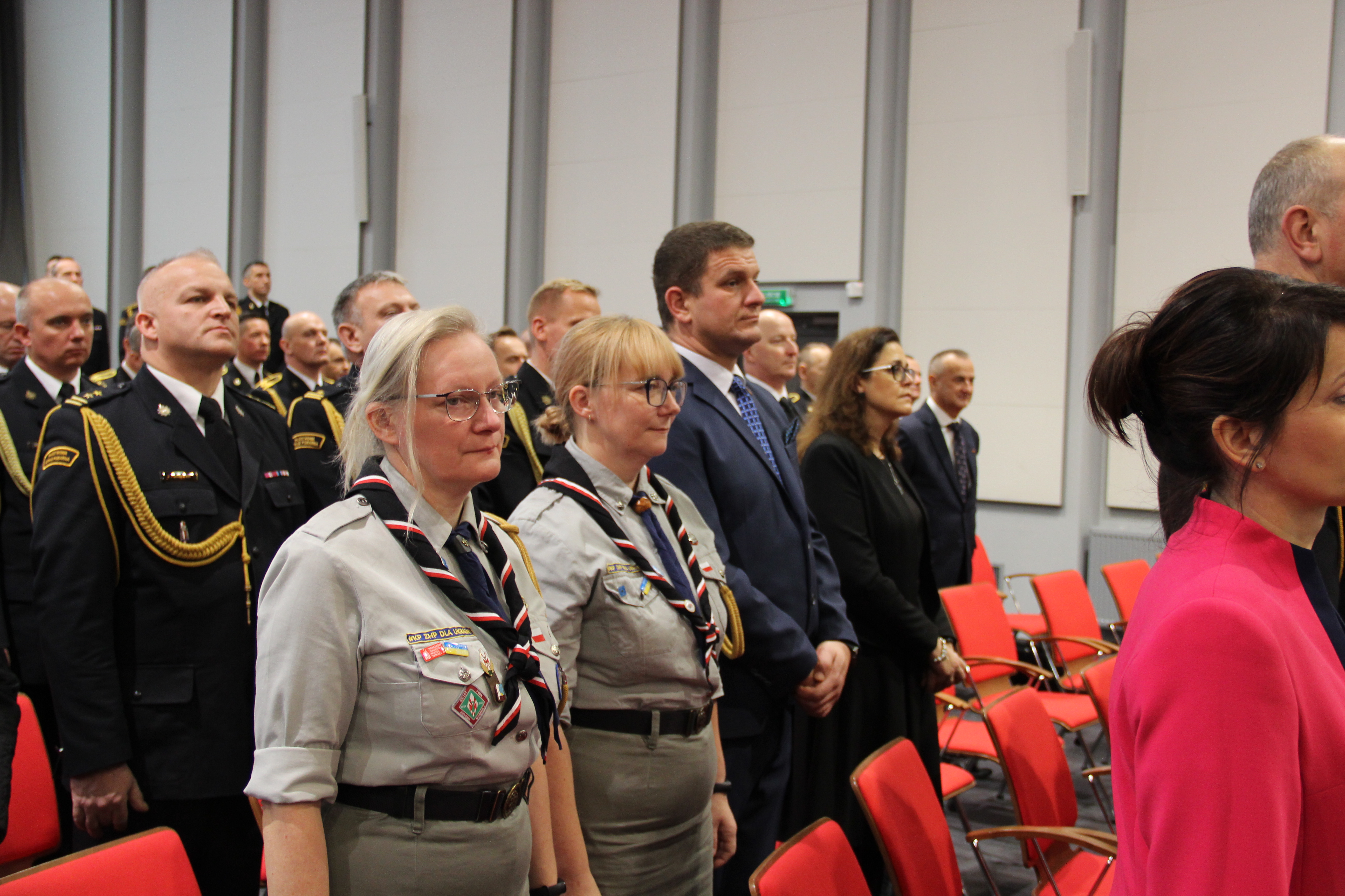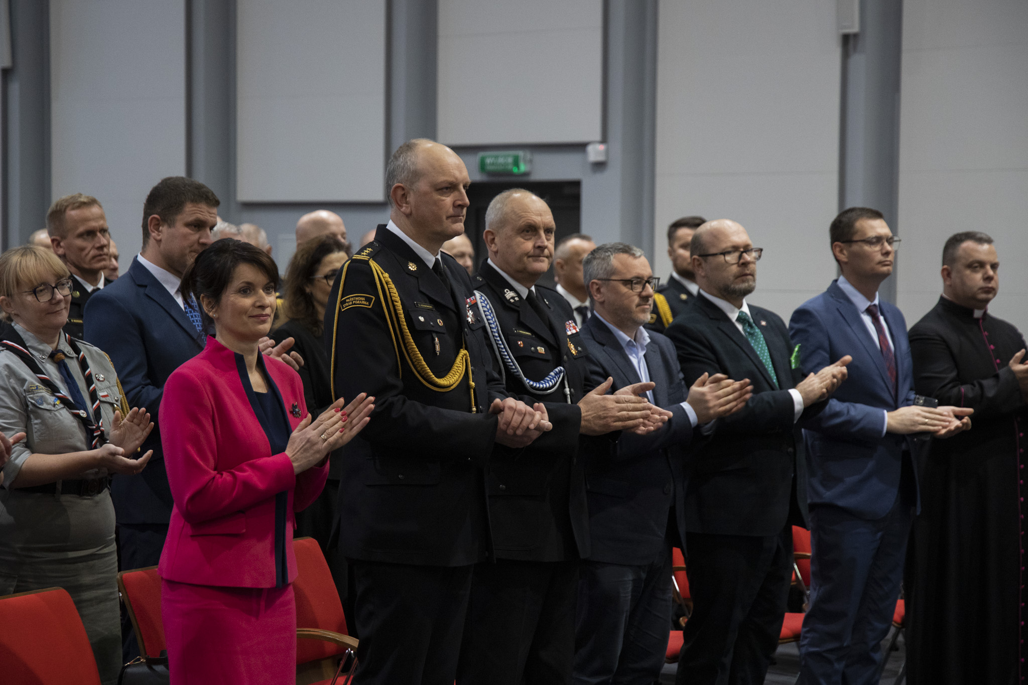 W uroczystości wzięli udział m.in. Ewa Kozanecka - Poseł na Sejm RP, wicewojewoda kujawsko-pomorski Radosław Kempinski, nadinsp. Piotr Leciejewski - komendant wojewódzki Policji w Bydgoszczy, szefowie i przedstawiciele służb, instytucji oraz organizacji współpracujących ze strażakami...