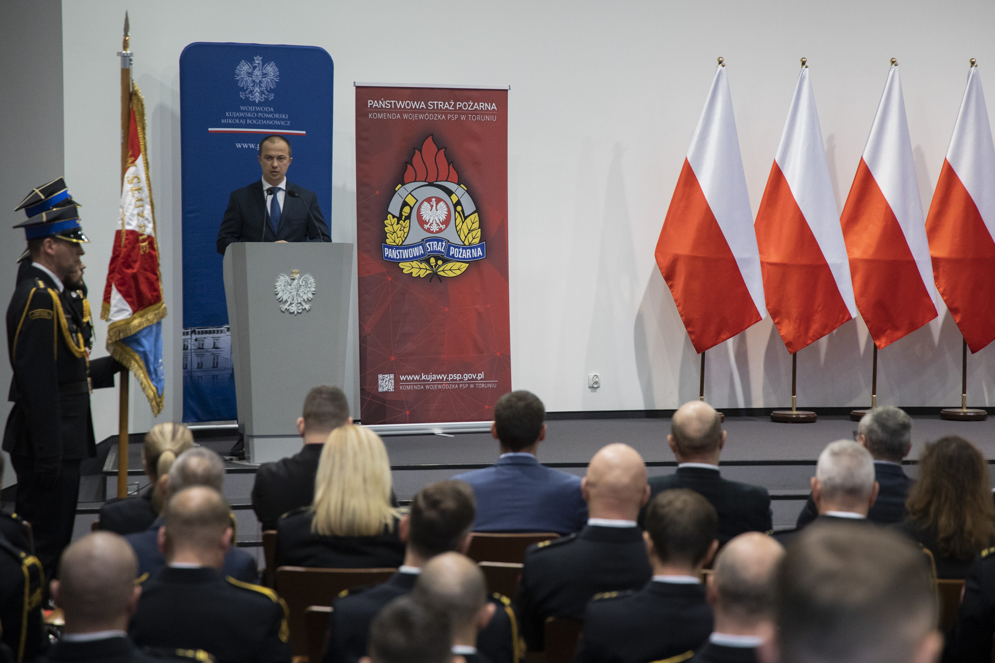 23 listopada br., w Kujawsko-Pomorskim Urzędzie Wojewódzkim w Bydgoszczy odbył się uroczysty apel z okazji Narodowego Święta Niepodległości. Funkcjonariuszy PSP z regionu udekorowano "Medalami za długoletnią służbę", odznakami Ministra Spraw Wewnętrznych i Administracji "Zasłużony dla ochrony przeciwpożarowej", wręczono Dyplomy i nagrody Komendanta Głównego PSP. Były także awanse na wyższy stopień służbowy w korpusie oficerskim i aspiranckim...