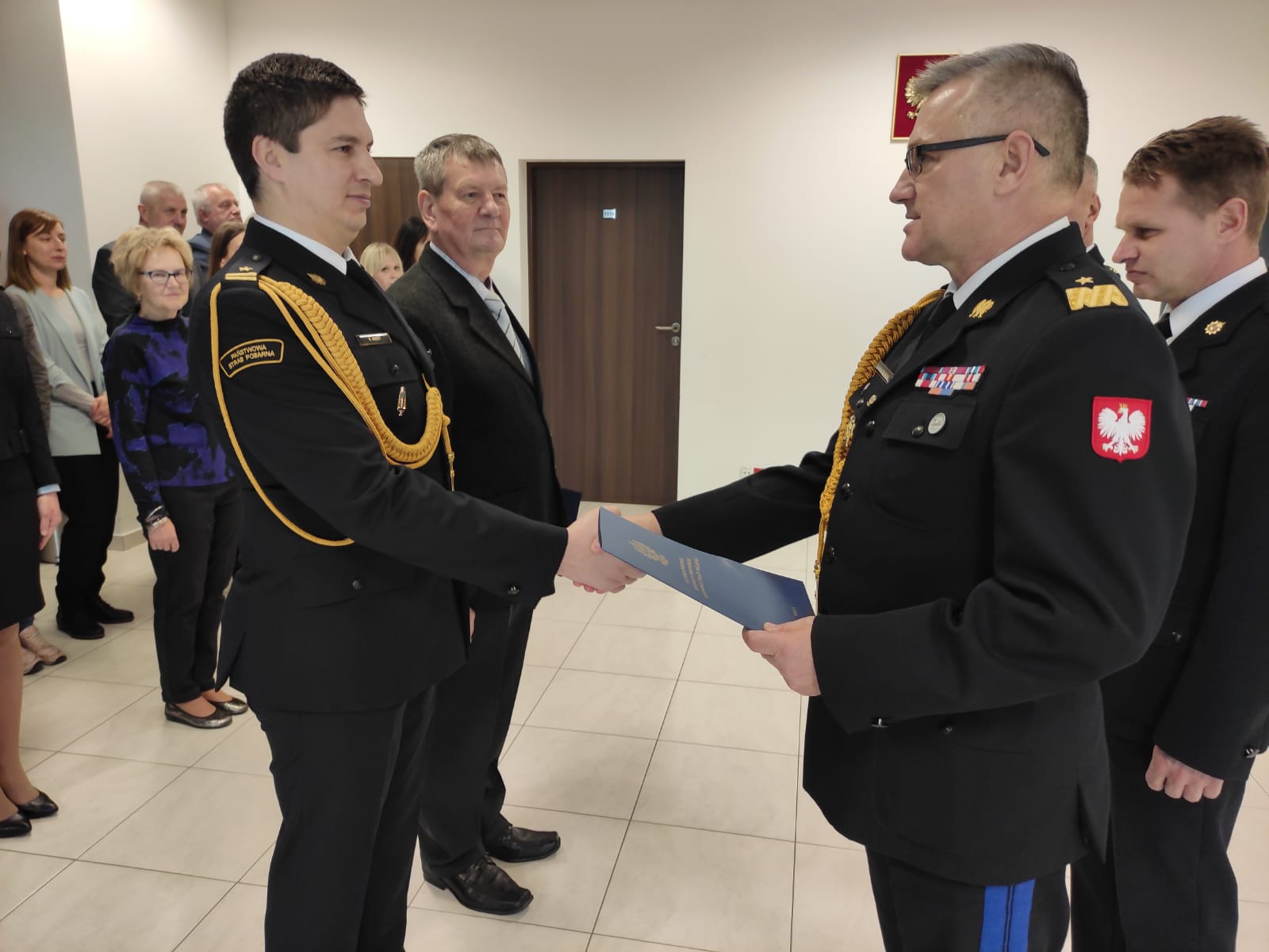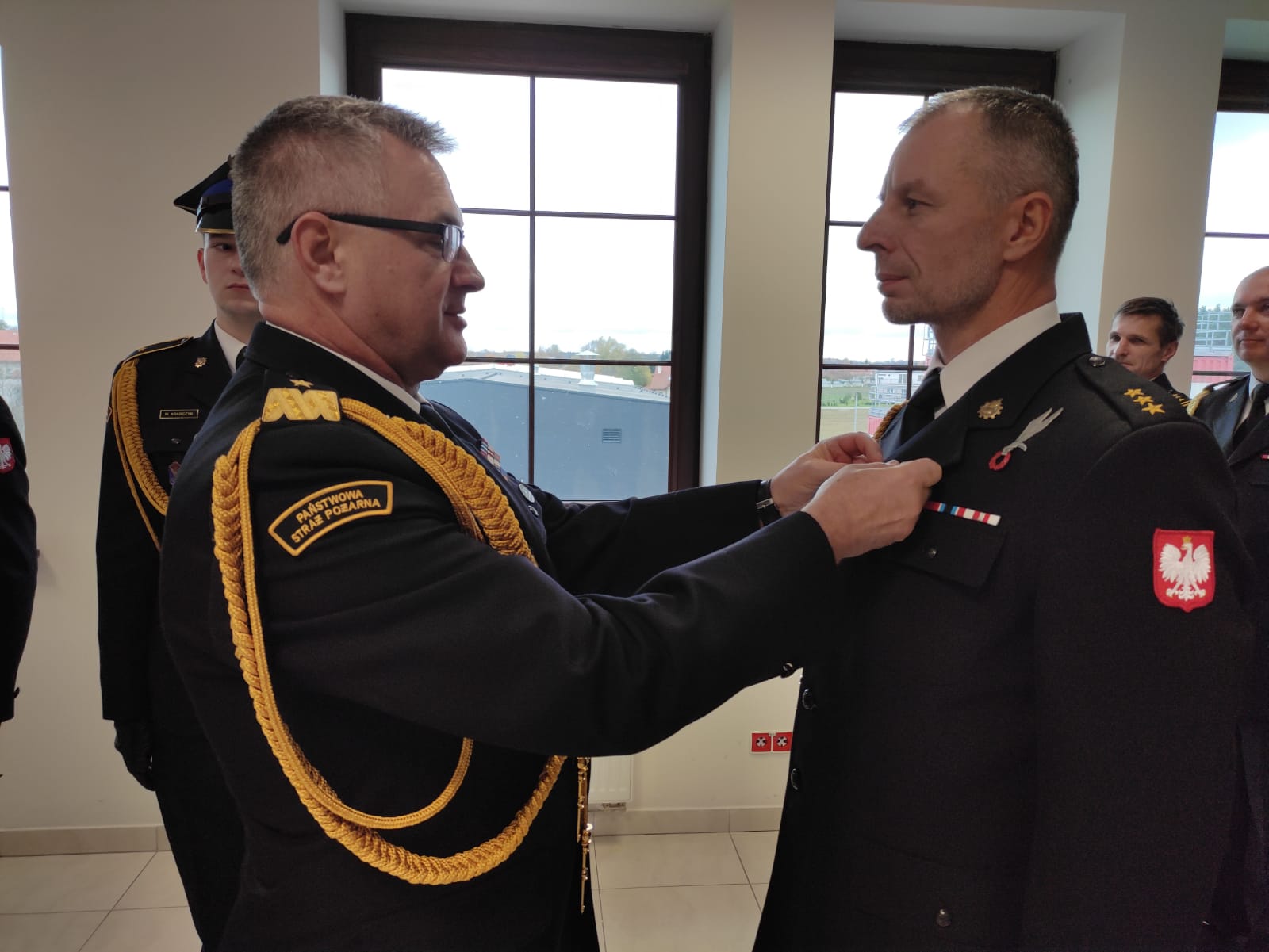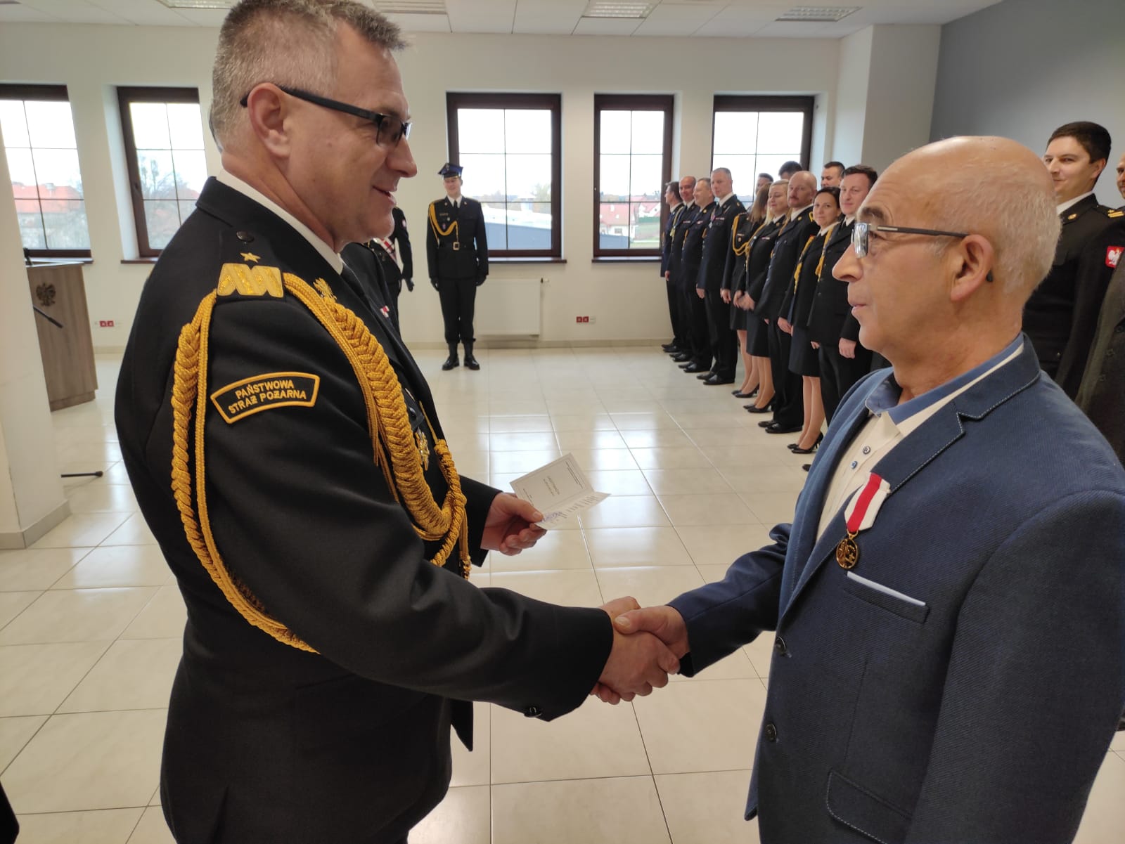 Grono uczestników zostało wyróznionych - st. kpt. Mariusz Wiwatowski - Srebrną Odznaką "Zasłużony dla Ochrony Przeciwpożarowej, st. kpt. Ewa Piotrowska odebrała nagrodę komendanta głównego PSP, Pan Władysław Kubiak został udekorowany Złotym Medalem "Za Zasługi dla Pożarnictwa" oraz Pan Ryszard Cechowski i mł. bryg. Krzysztof Arent odebrali nagrody jubileuszowe, odpowiednio za 45 i za 20 lat służby i pracy.