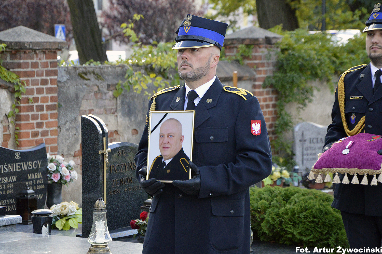 W drodze do miejsca spoczynku towarzyszyła Jemu Kompania Reprezentacyjna KW PSP w Toruniu,