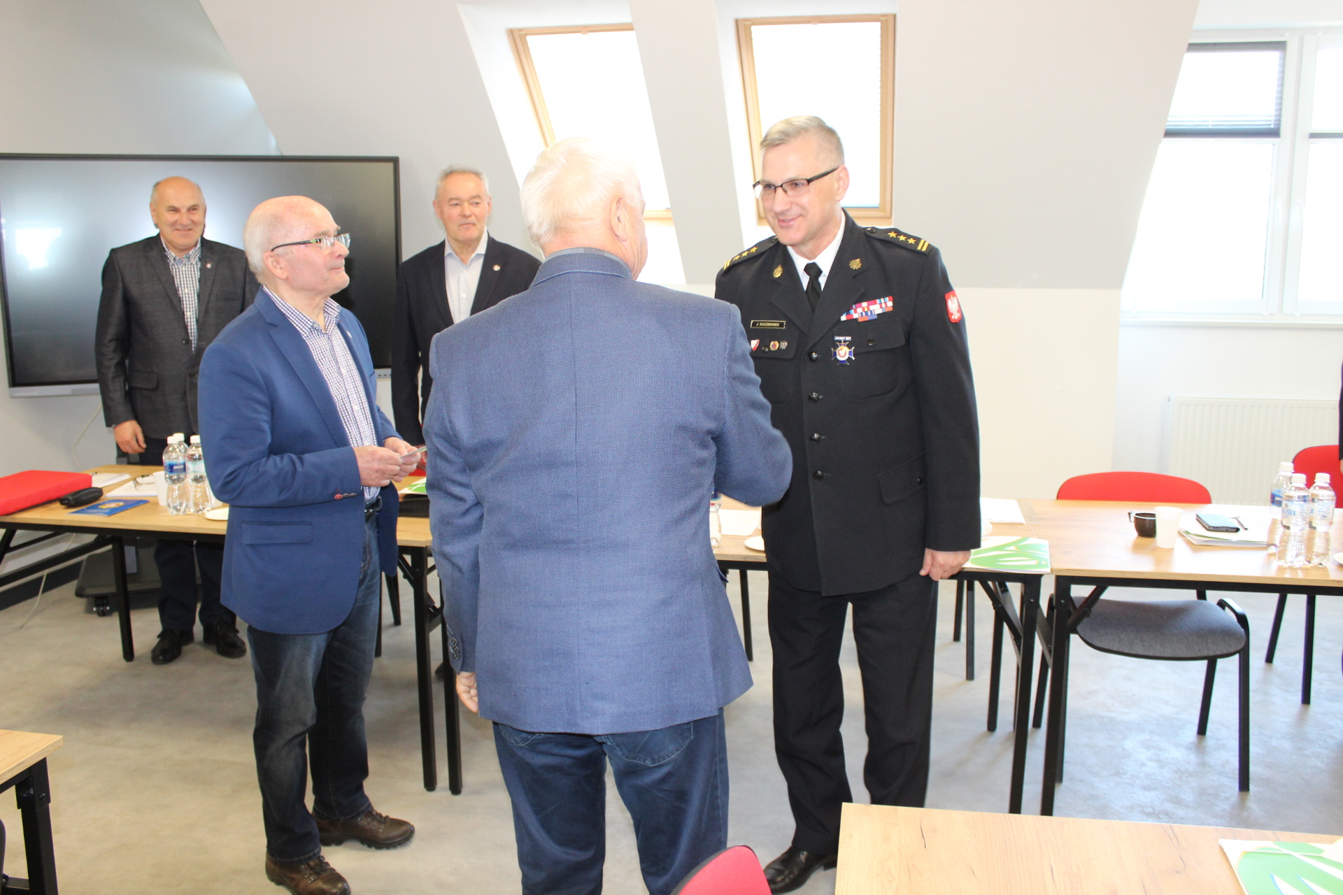 Głównym punktem zebrania było wręczenie nadanej przez Prezydium Zarządu Głównego Związku Emerytów i Rencistów Pożarnictwa Rzeczypospolitej Polskiej kujawsko-pomorskiemu komendantowi wojewódzkiemu Państwowej Straży Pożarnej st. bryg. Jackowi Kaczmarkowi Odznaki honorowej „Zasłużony dla Związku Emerytów i Rencistów Pożarnictwa RP”. Odznakę wręczył Prezes Zarządu Głównego Związku Emerytów i Rencistów Pożarnictwa Rzeczypospolitej Polskiej Pan Zygmunt Politowski wraz z Prezesem Zarządu Oddziału Wojewódzkiego Związku Emerytów i Rencistów Pożarnictwa Rzeczypospolitej Polskiej Panem Włodzimierzem Maraszem.
