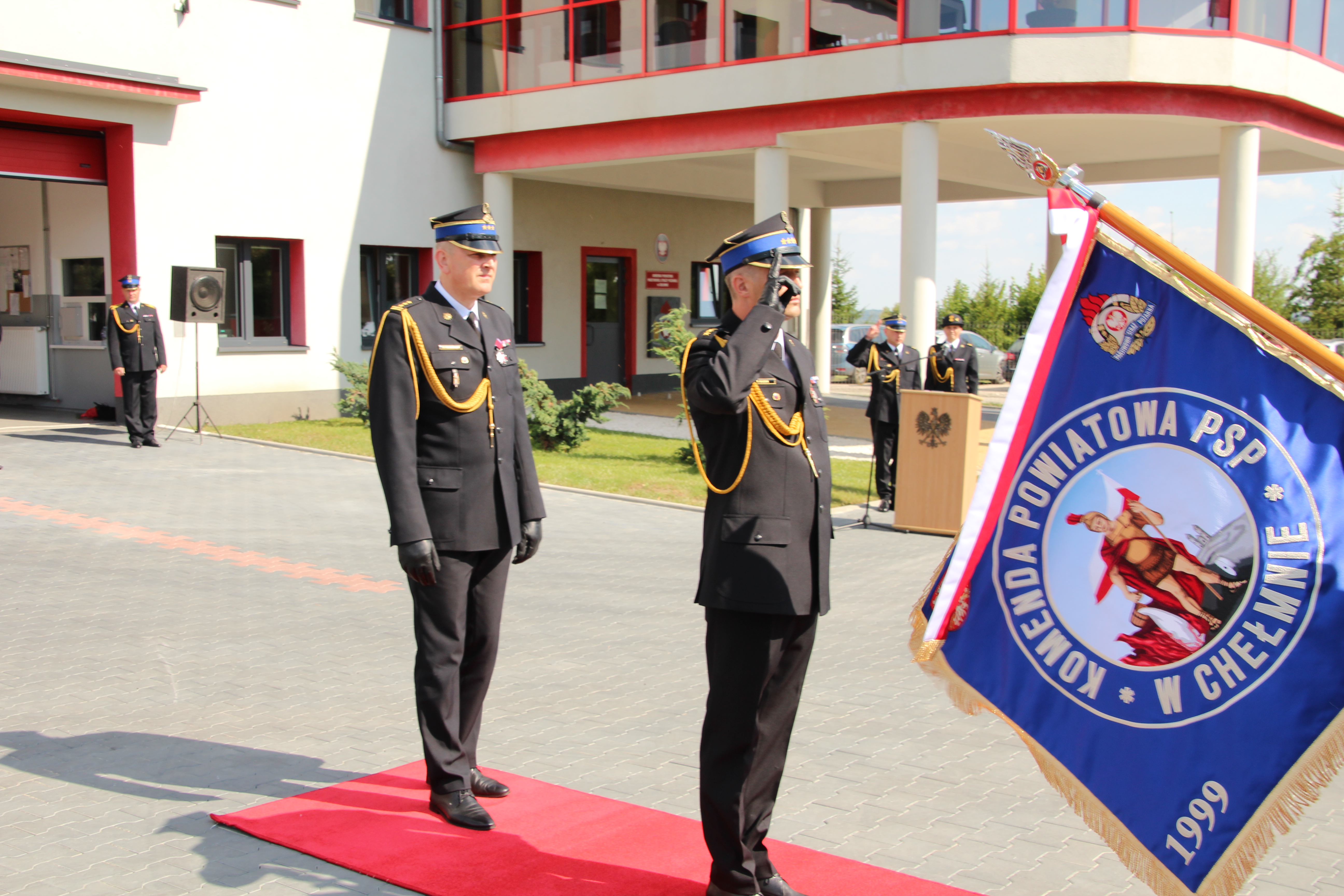 Podczas uroczystości Zastępca Kujawsko-Pomorskiego Komendanta Wojewódzkiego PSP st. bryg. Sławomir Herbowski wręczył akt powołania na stanowisko Komendanta Powiatowego Państwowej Straży Pożarnej w Chełmnie st. kpt. mgr. Tomaszowi Guzkowi. Wśród gości obecnych na uroczystości byli: