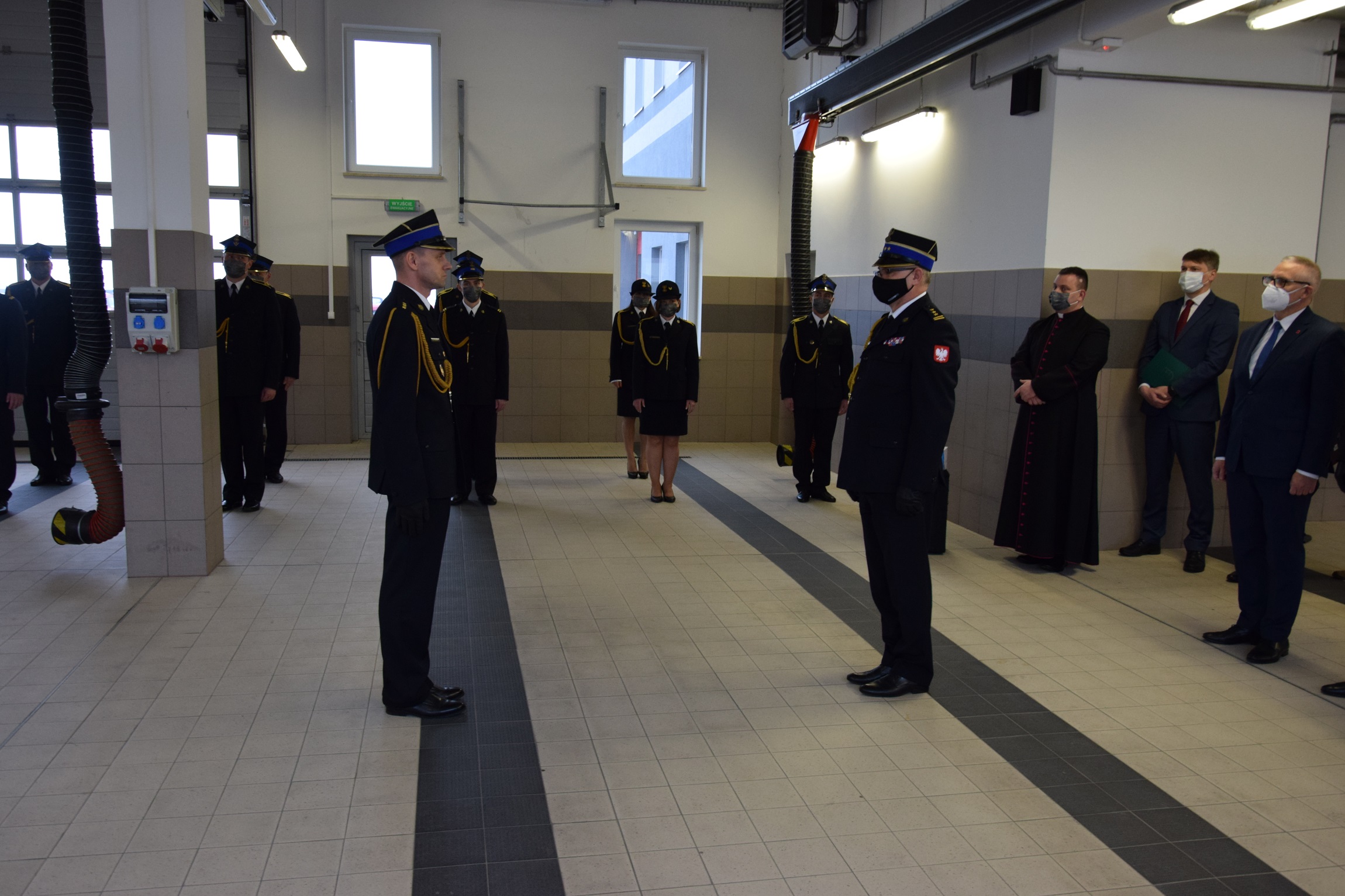 Zbiórka rozpoczęła się od złożenia meldunku przez dowódcę uroczystości kpt. Dawida Krajnika Kujawsko-Pomorskiemu Komendantowi Wojewódzkiemu PSP st. bryg. Jackowi Kaczmarkowi. Następnie odczytano akt powołania na stanowisko Zastępcy Komendanta Powiatowego Państwowej Straży Pożarnej w Wąbrzeźnie kpt. Roberta Stasiaka.